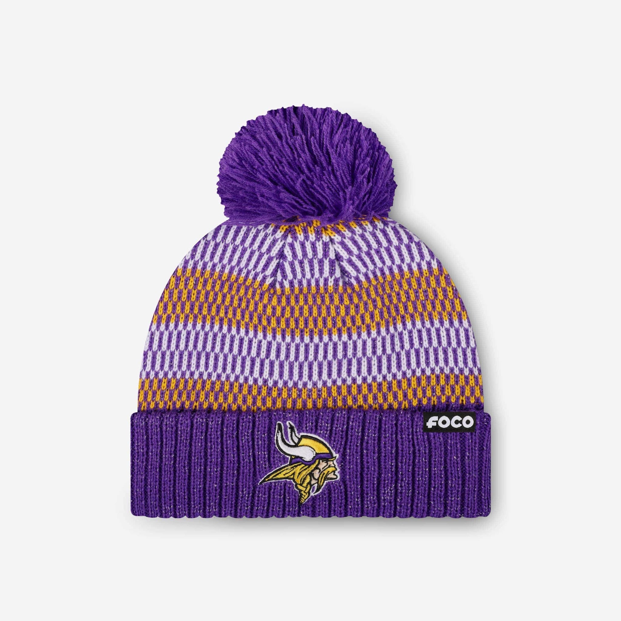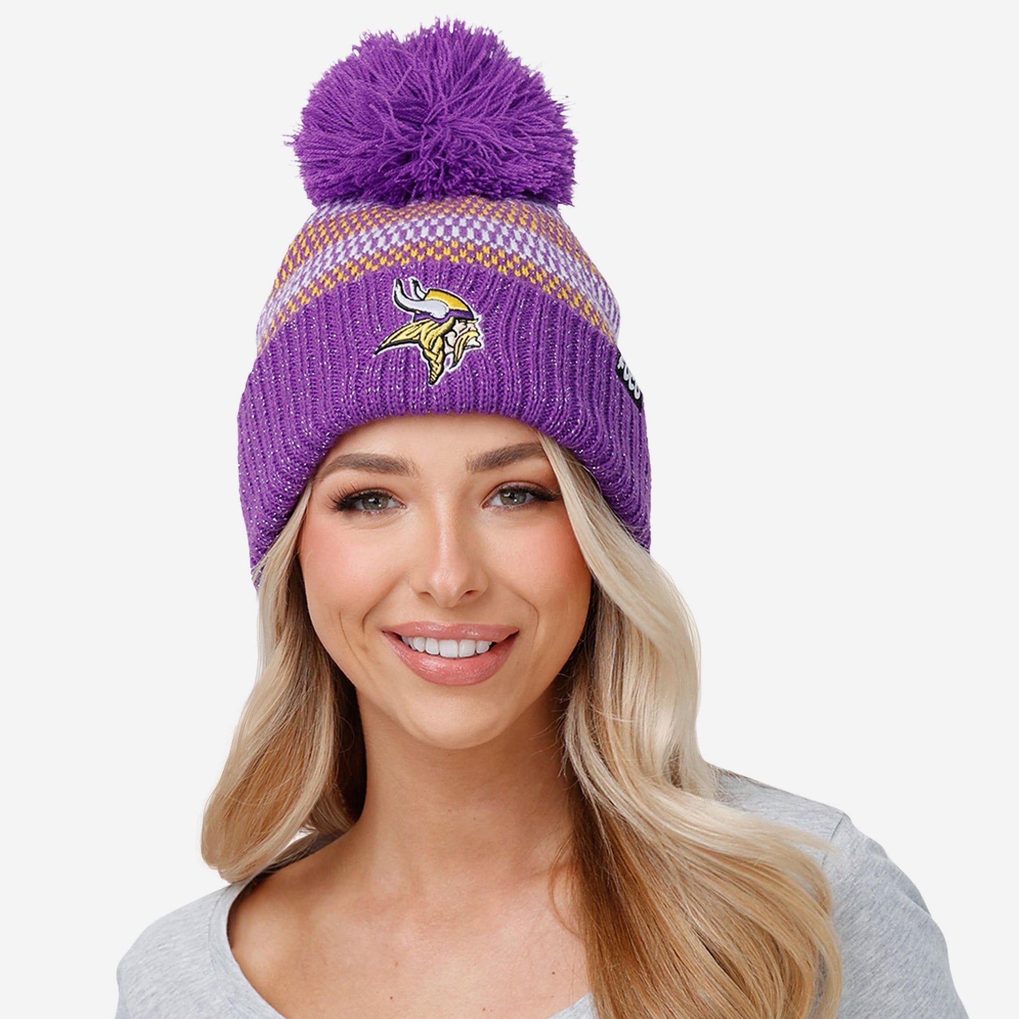 Putting together the ultimate fit for the tailgate and beyond? Make sure to get your head in the game with the Minnesota Vikings Women's Cozy Knit Metallic Thread Pom Beanie!