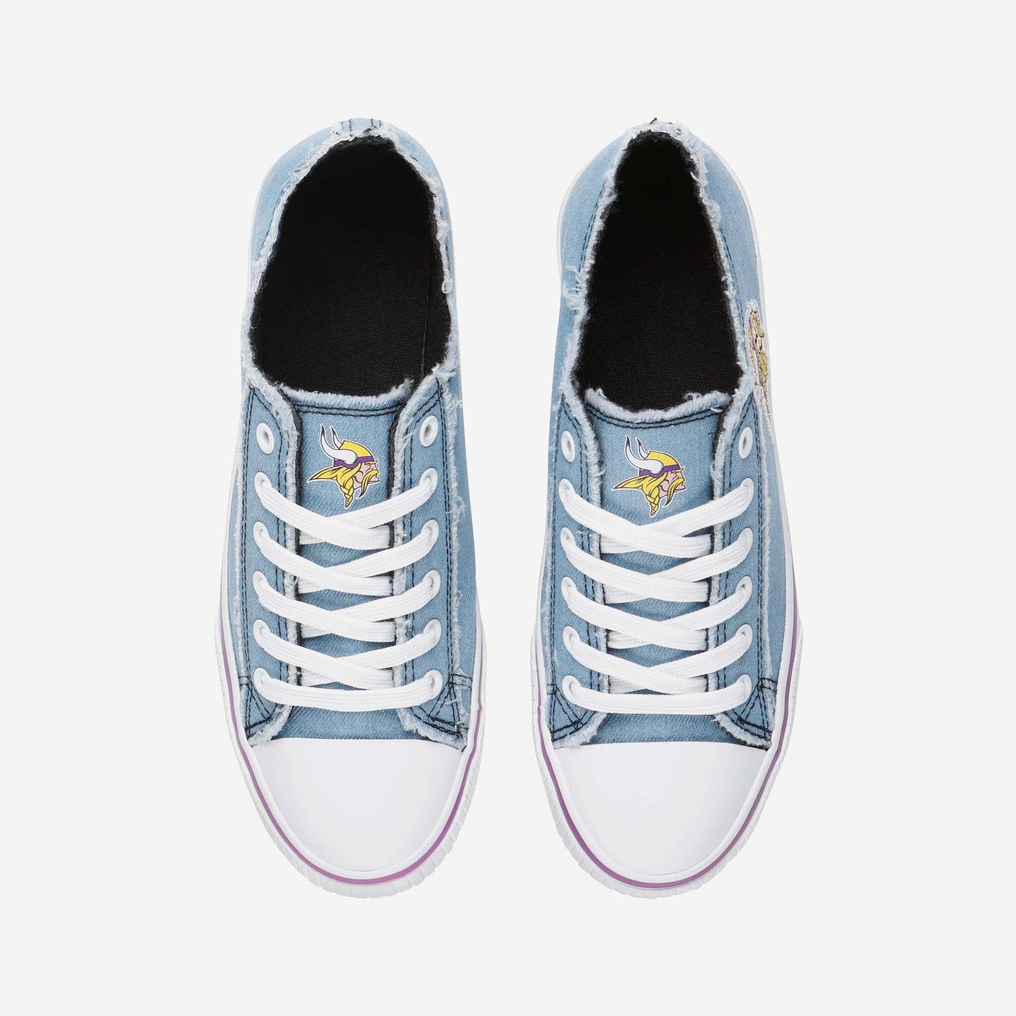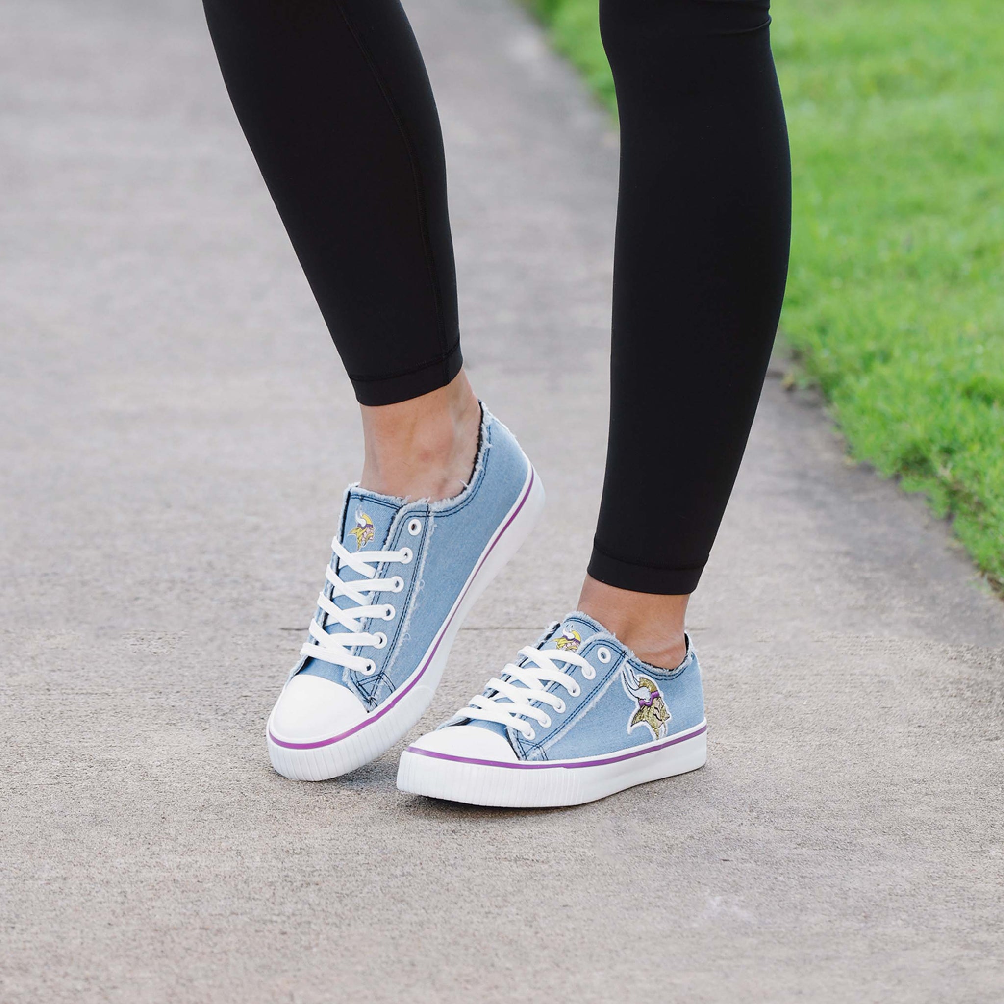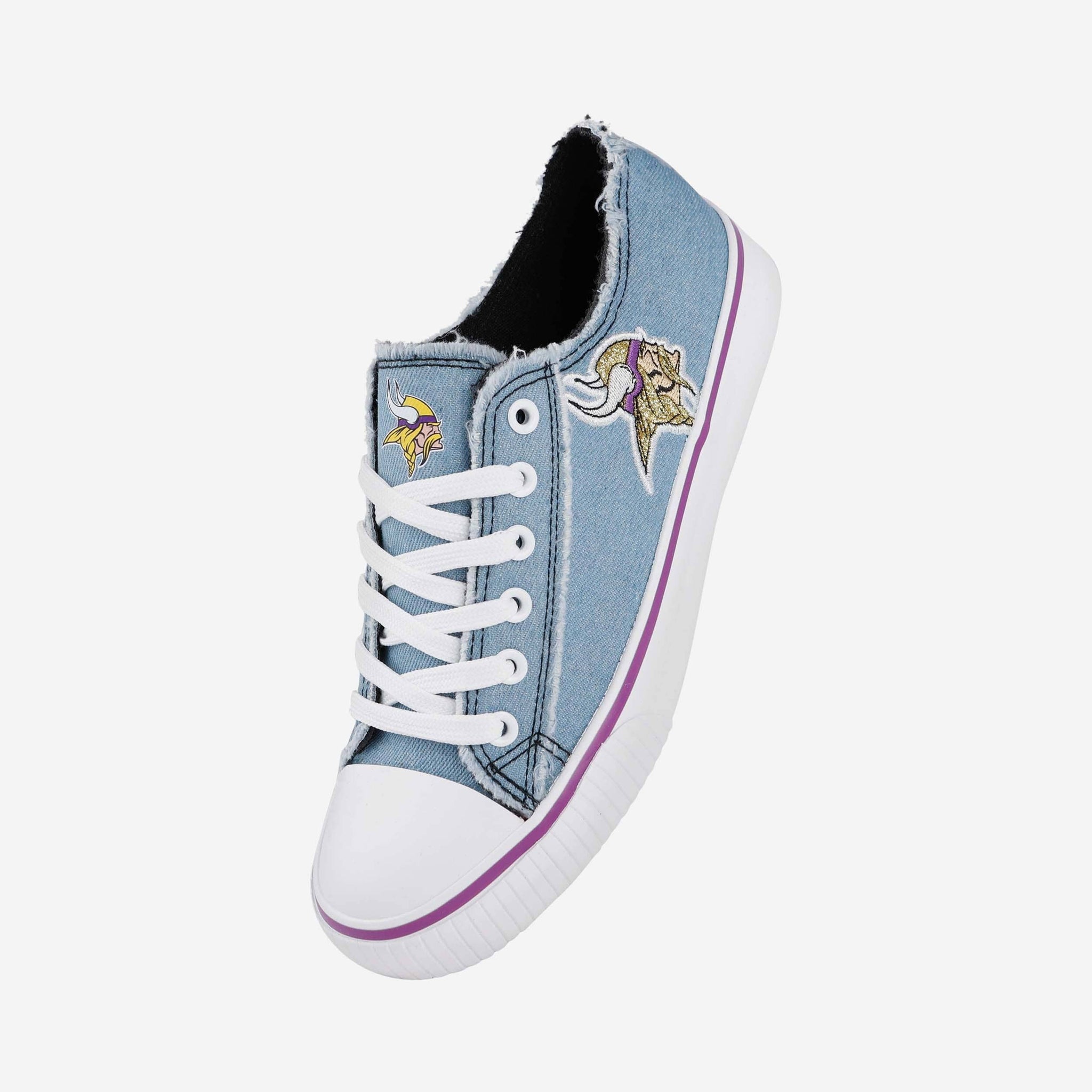 Nobody can dull your sparkle as a fan! Get ready to make all your game days denim days too as you shine on with a pair of Minnesota Vikings Women's Denim Low Top Canvas Shoes.