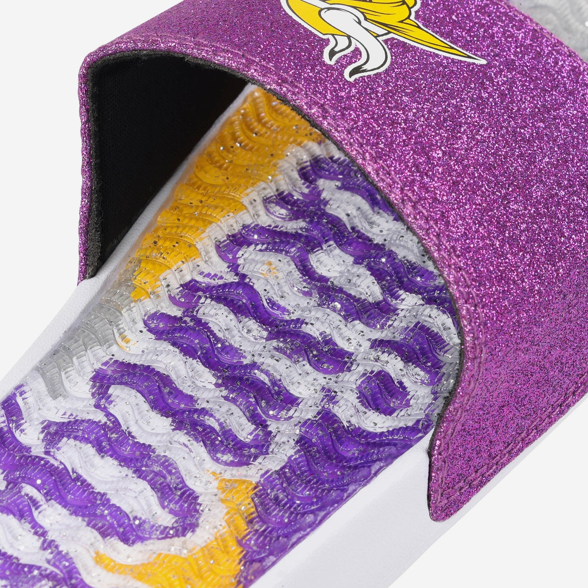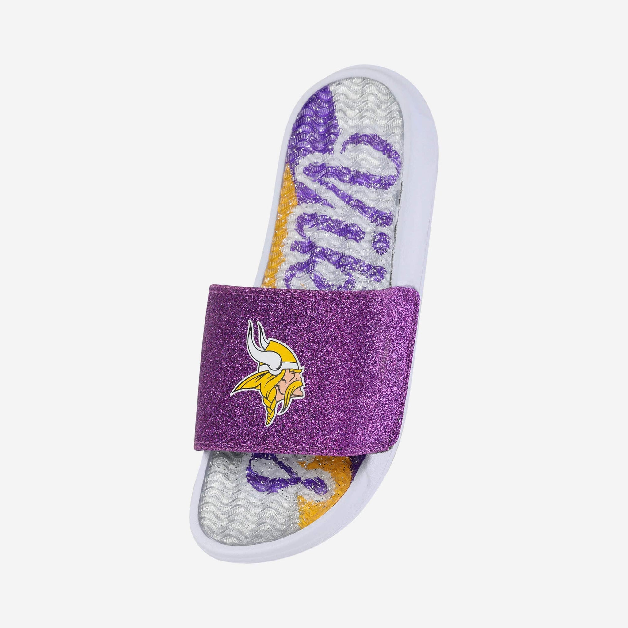 Fan footwear that will make you the pick of the glitter. Let your team spirit shine with every step in these Minnesota Vikings Women's Glitter Gel Slides!
