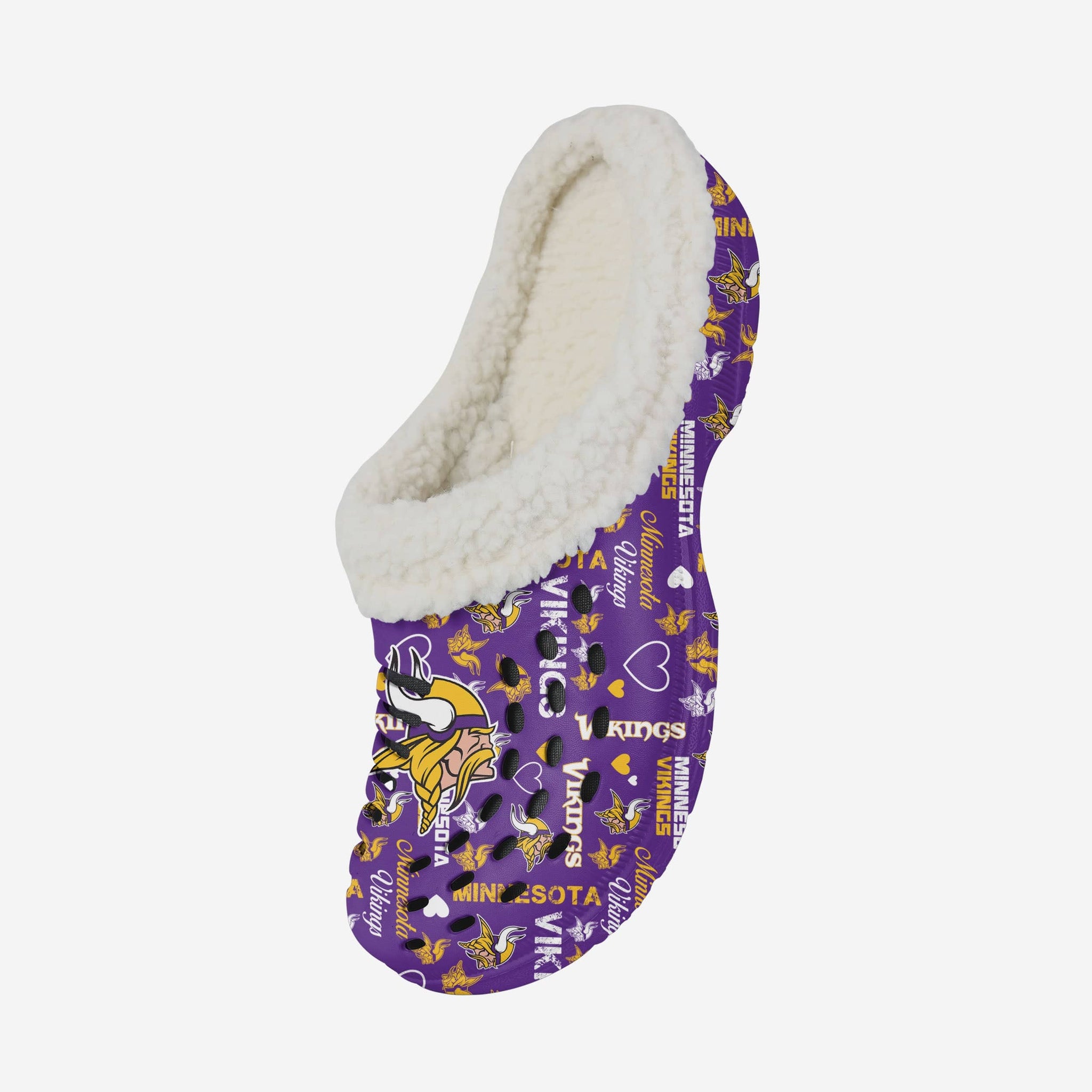 Don't just add some pep to your step - Add a little love to it, too. These Minnesota Vikings Women's Sherpa Lined Logo Love Clogs are just what you're looking for.