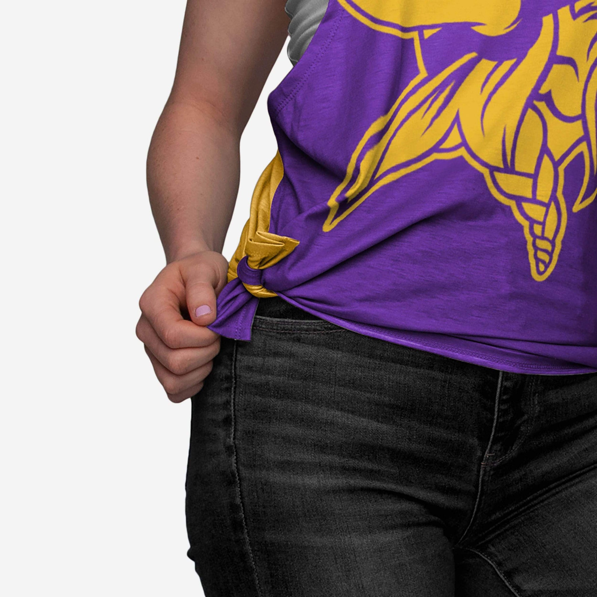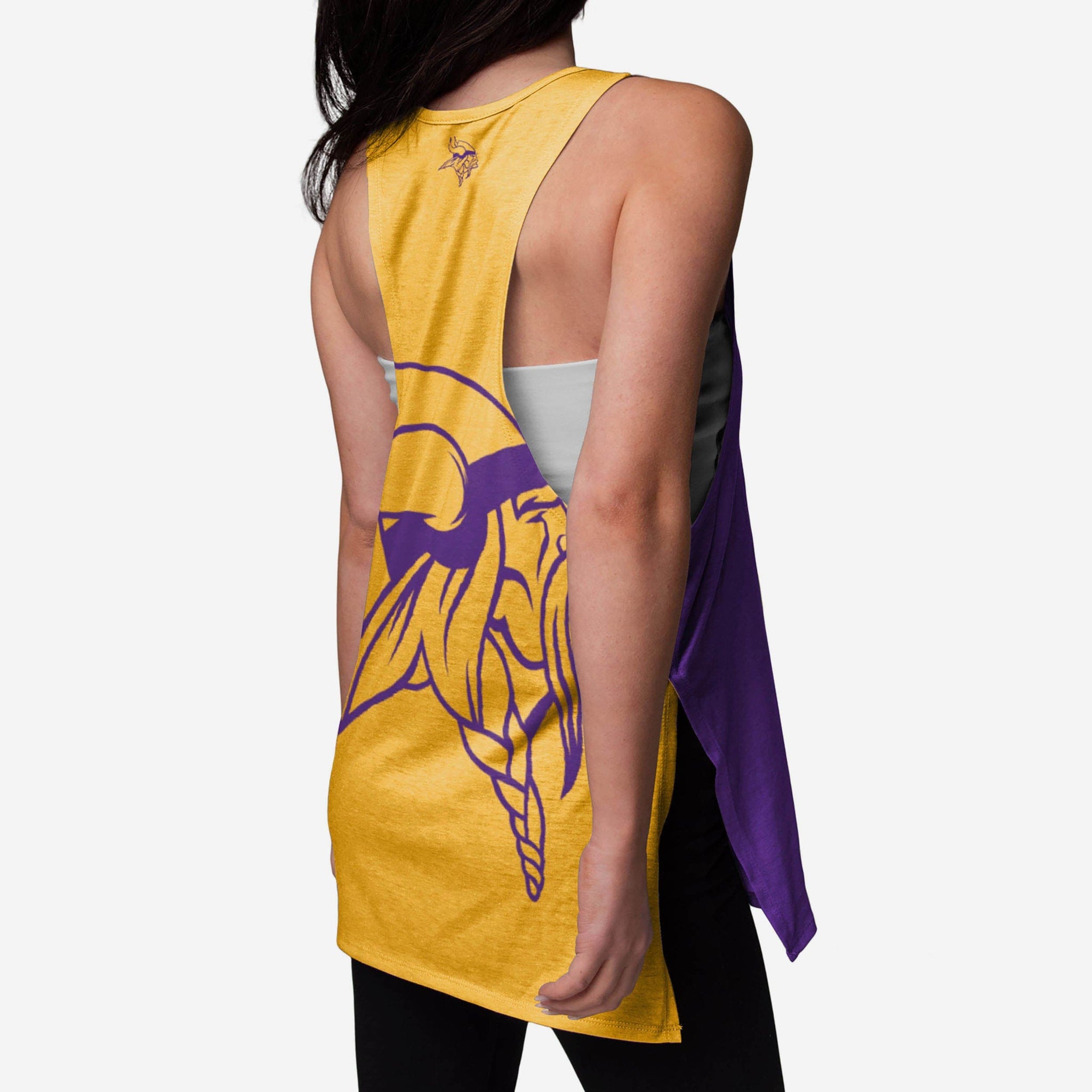 Bold fans like you need to boldly show off your fandom. That's where this Minnesota Vikings Side-Tie Sleeveless Top comes in. It has your team colors on display on the front and the back, because two ways to show off your team spirit are better than one.