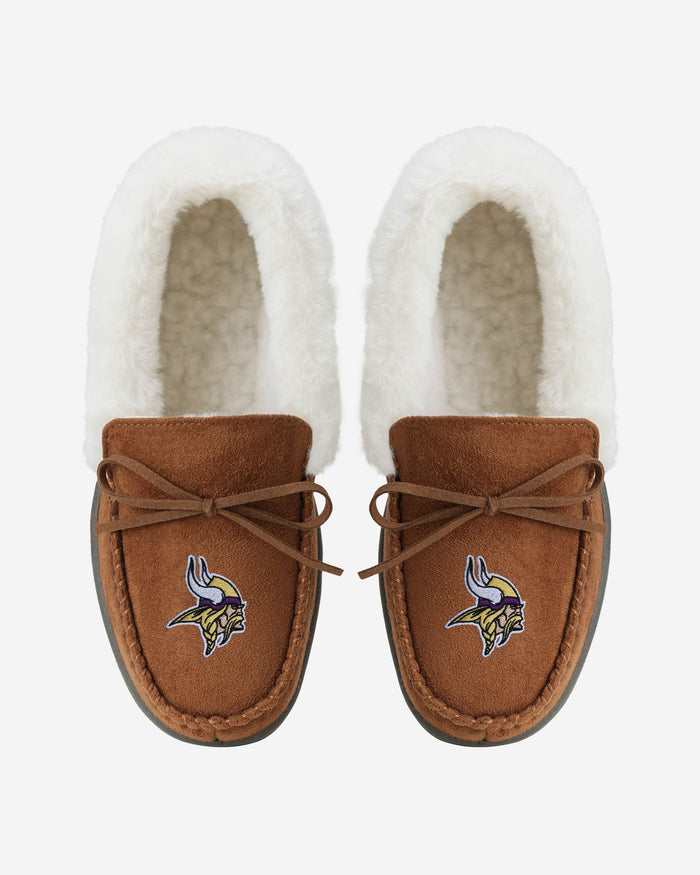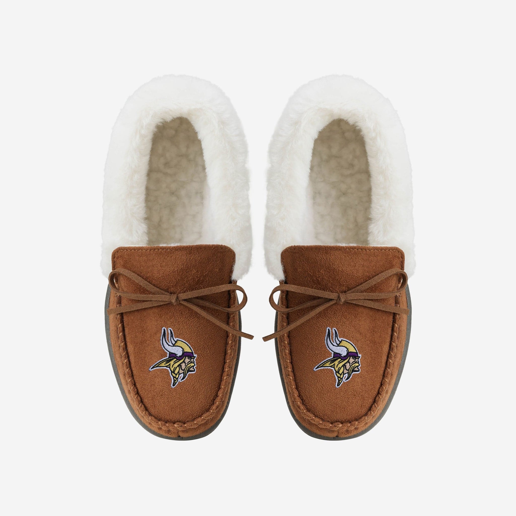 When you rocc these moccs, you can be an MVP on the couch watching TV! Introducing the Minnesota Vikings Women's Tan Moccasin Slippers!