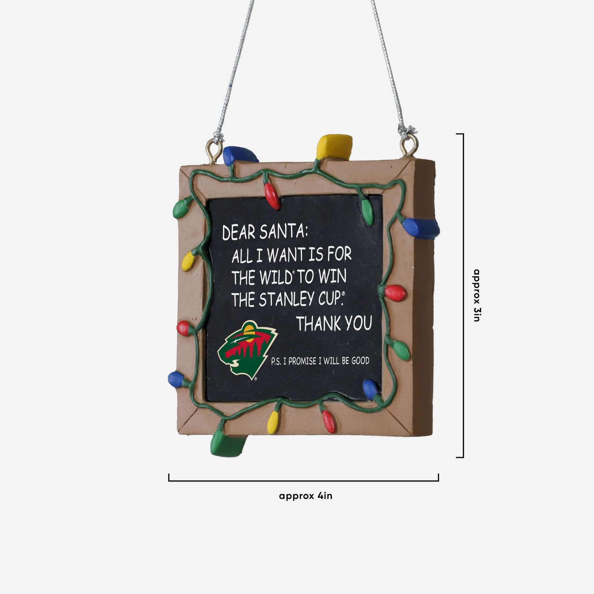 So, you made your list and sent it to jolly ol' Fanta Claus, asking him for a championship. But sometimes letters can get lost in the mail. Just in case, put this Minnesota Wild Resin Chalkboard Sign Ornament on your tree to let him know how good you've been this year, and that all you want for the holidays is a trophy.