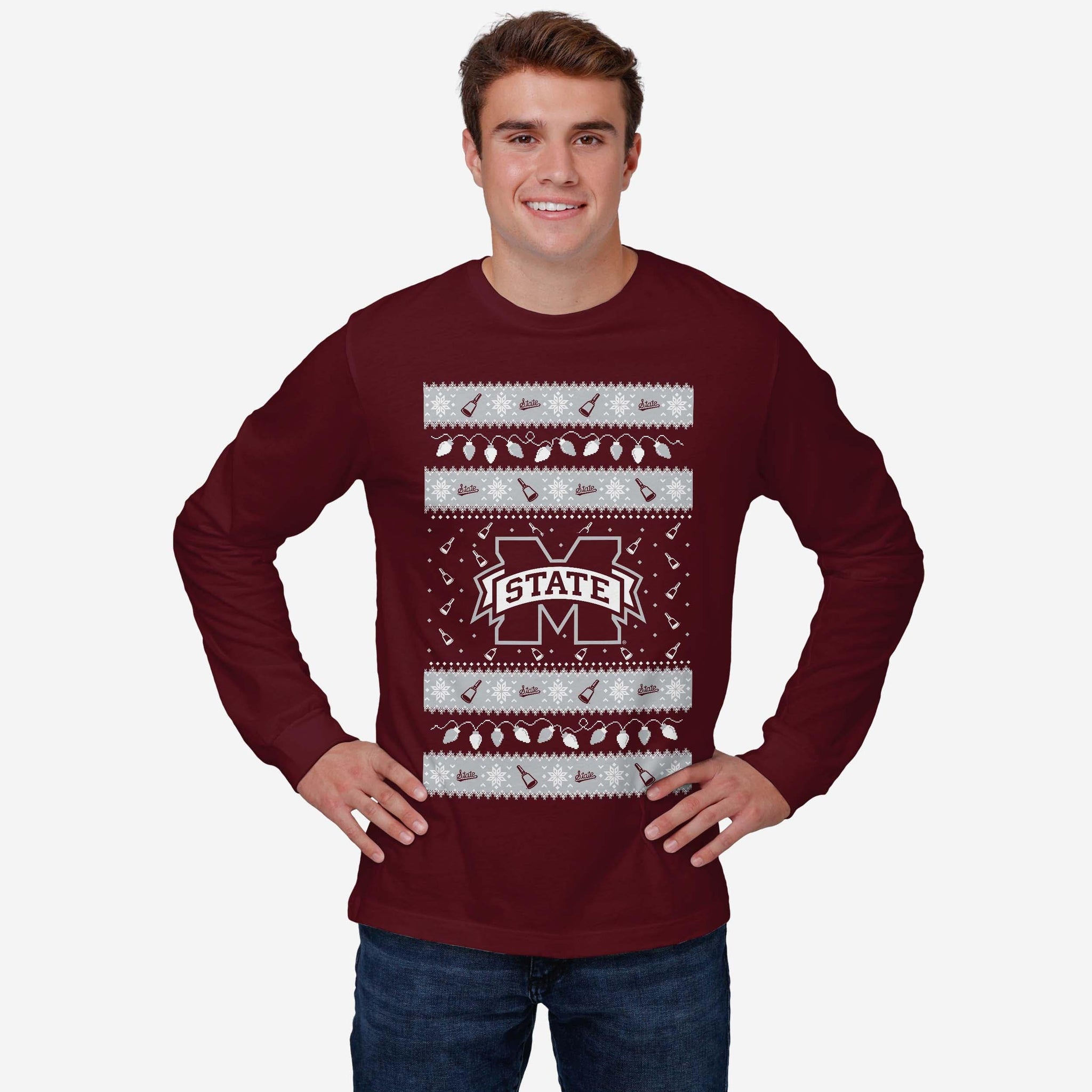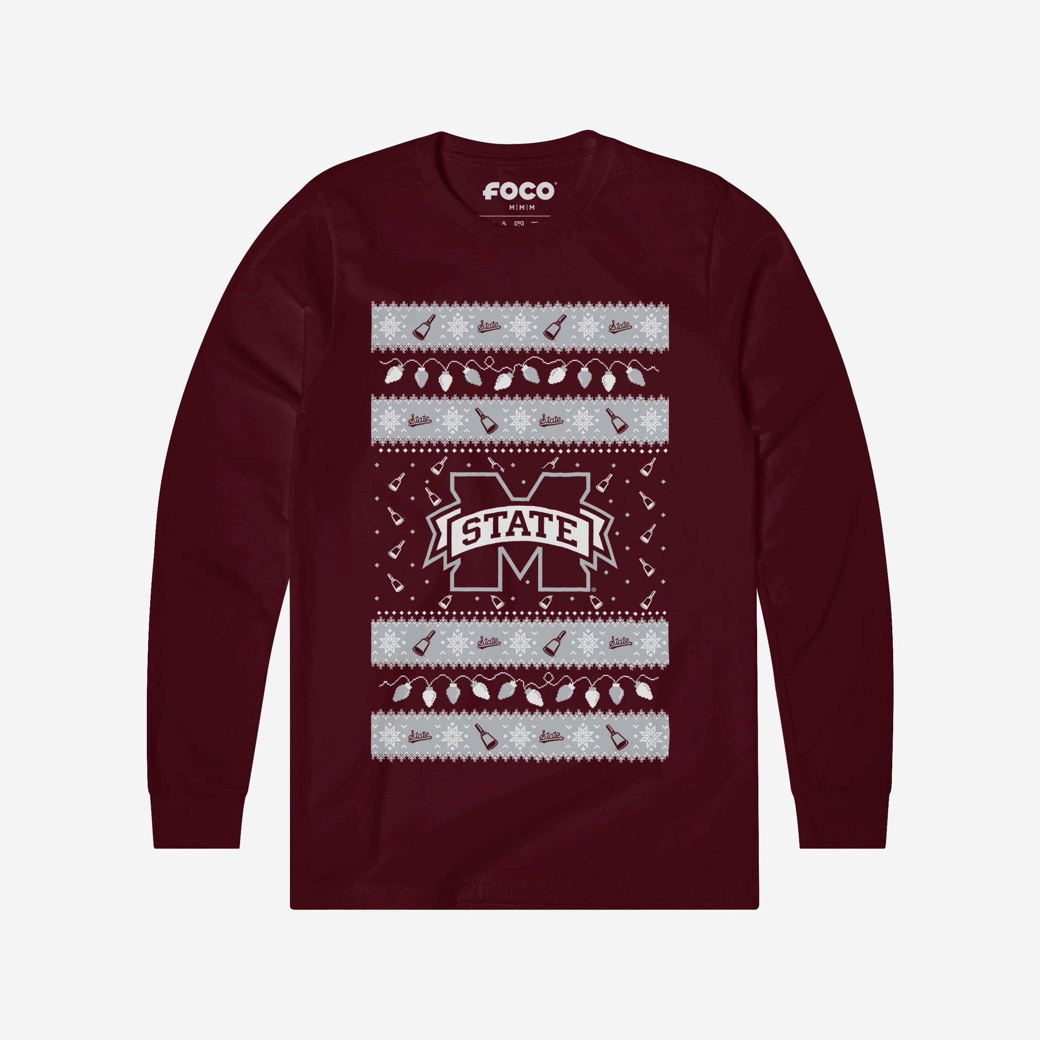 Santa's making a list, and he’s checking it twice! Prove that you’re the nicest fan around with the Mississippi State Bulldogs Holiday Lights Sweater Long Sleeve T-Shirt.