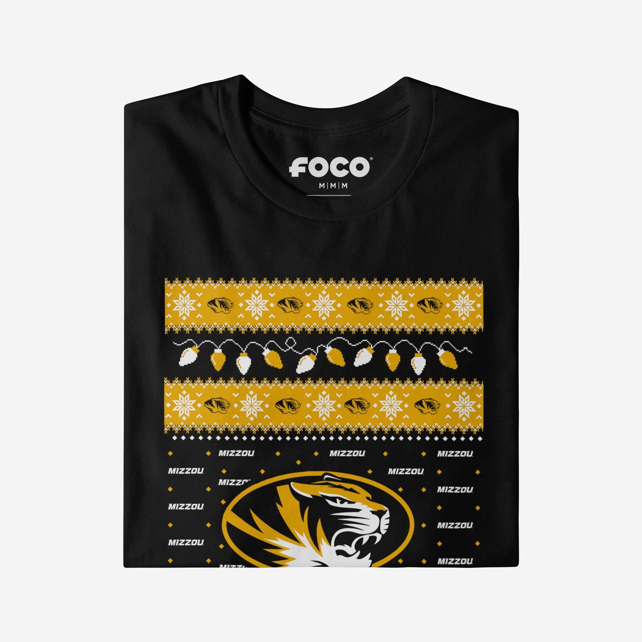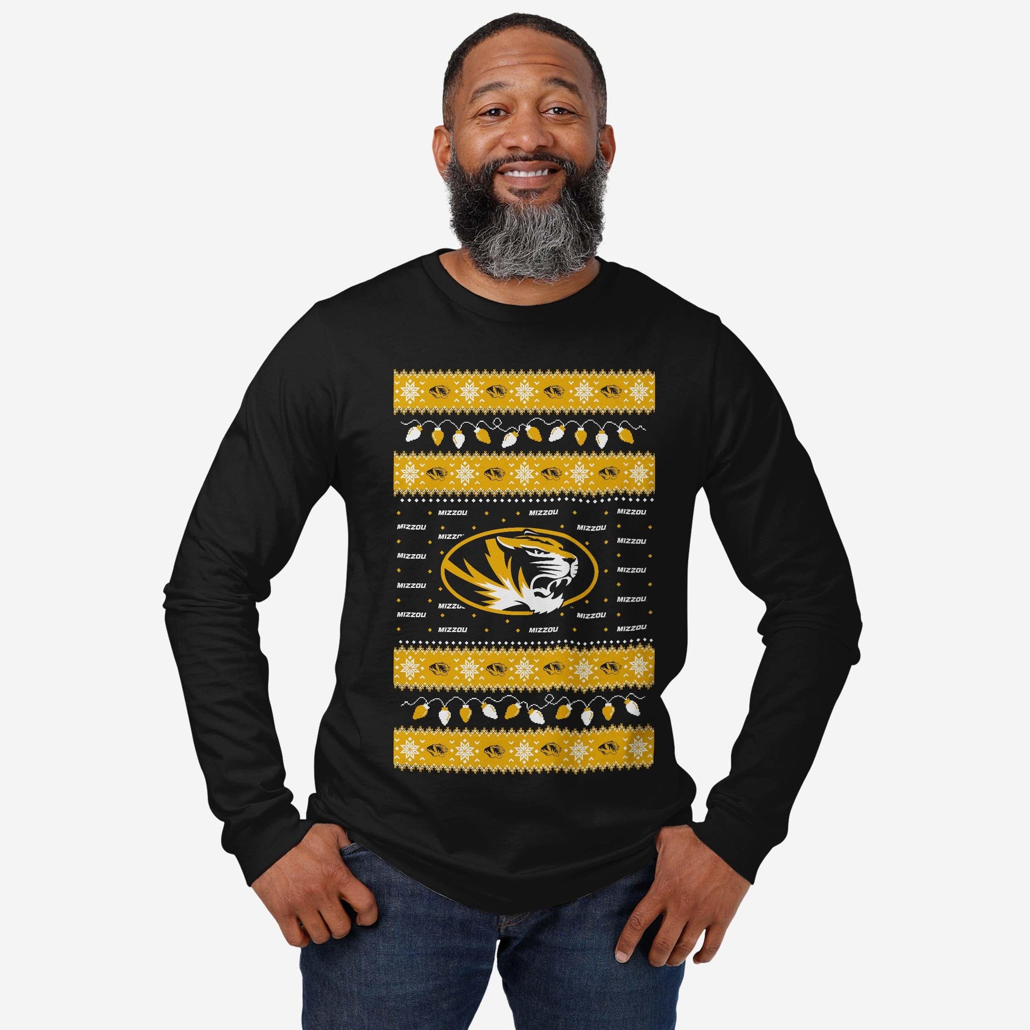 Santa's making a list, and he’s checking it twice! Prove that you’re the nicest fan around with the Missouri Tigers Holiday Lights Sweater Long Sleeve T-Shirt.