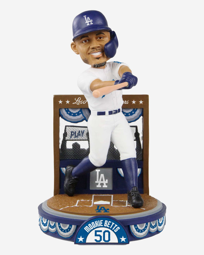 Get your lucky cap on, grab your hot dog and popcorn, and fill out your scorecard. It's time to PLAY BALL! This Mookie Betts Los Angeles Dodgers Play Ball Bobblehead is here to bring some superstar status to your collection for all nine innings and beyond.