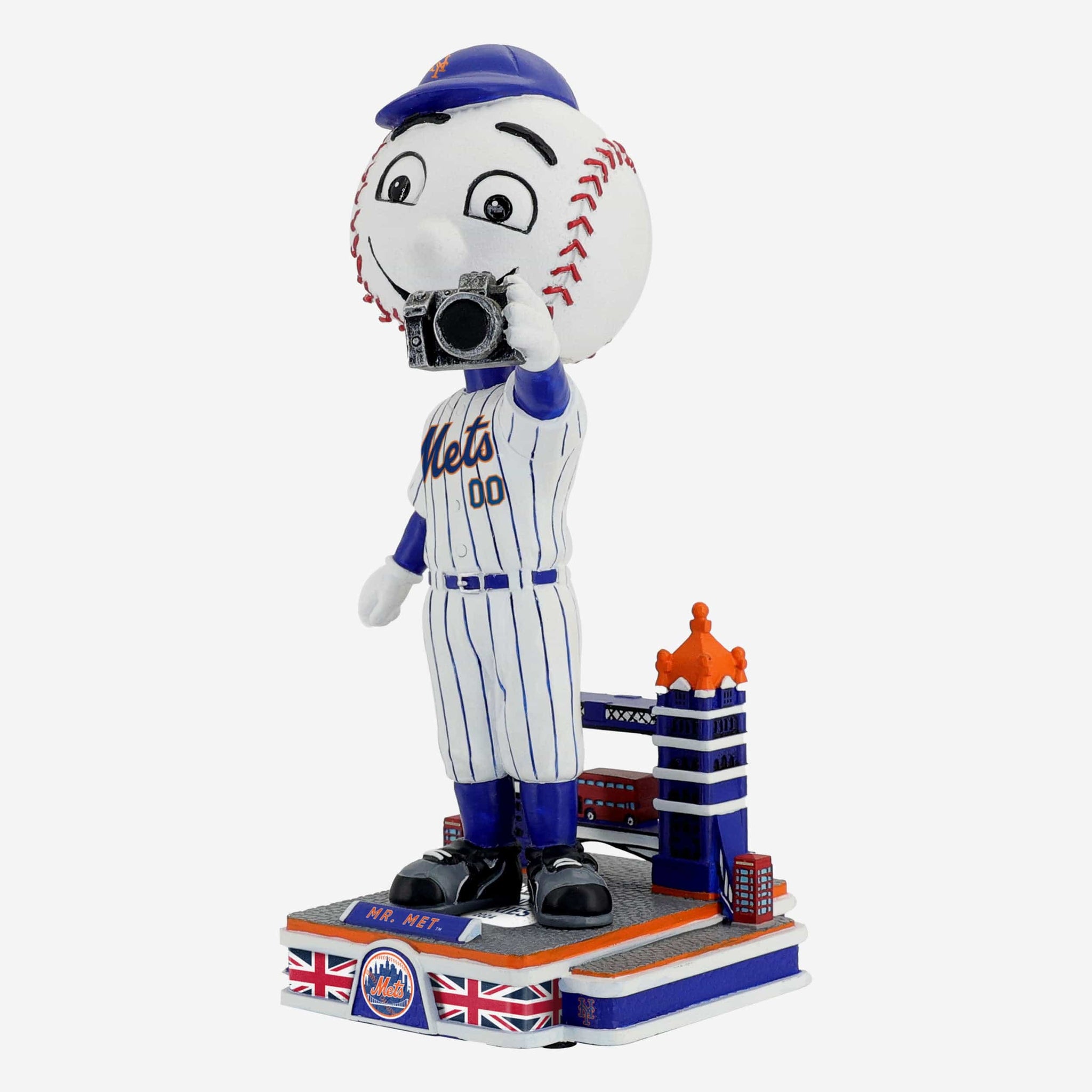 - Portrays Mr. Met posing in his white gameday uniform and holding a camera, ready to fire up the London crowd