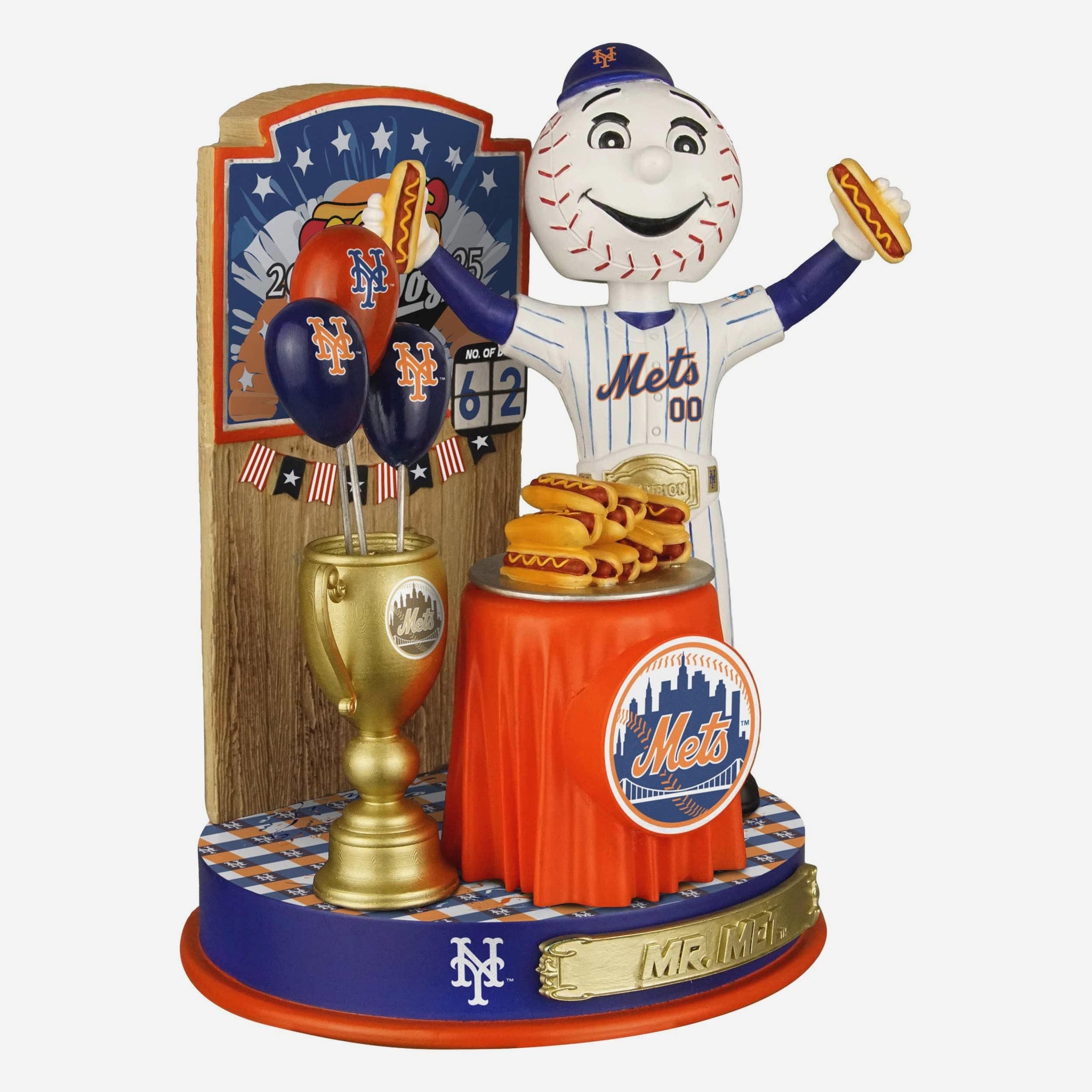 It’s time to house some hot dogs! Bring the action (and the appetite) home with this Mr Met New York Mets Hot Dog Eating Contest Bobblehead.