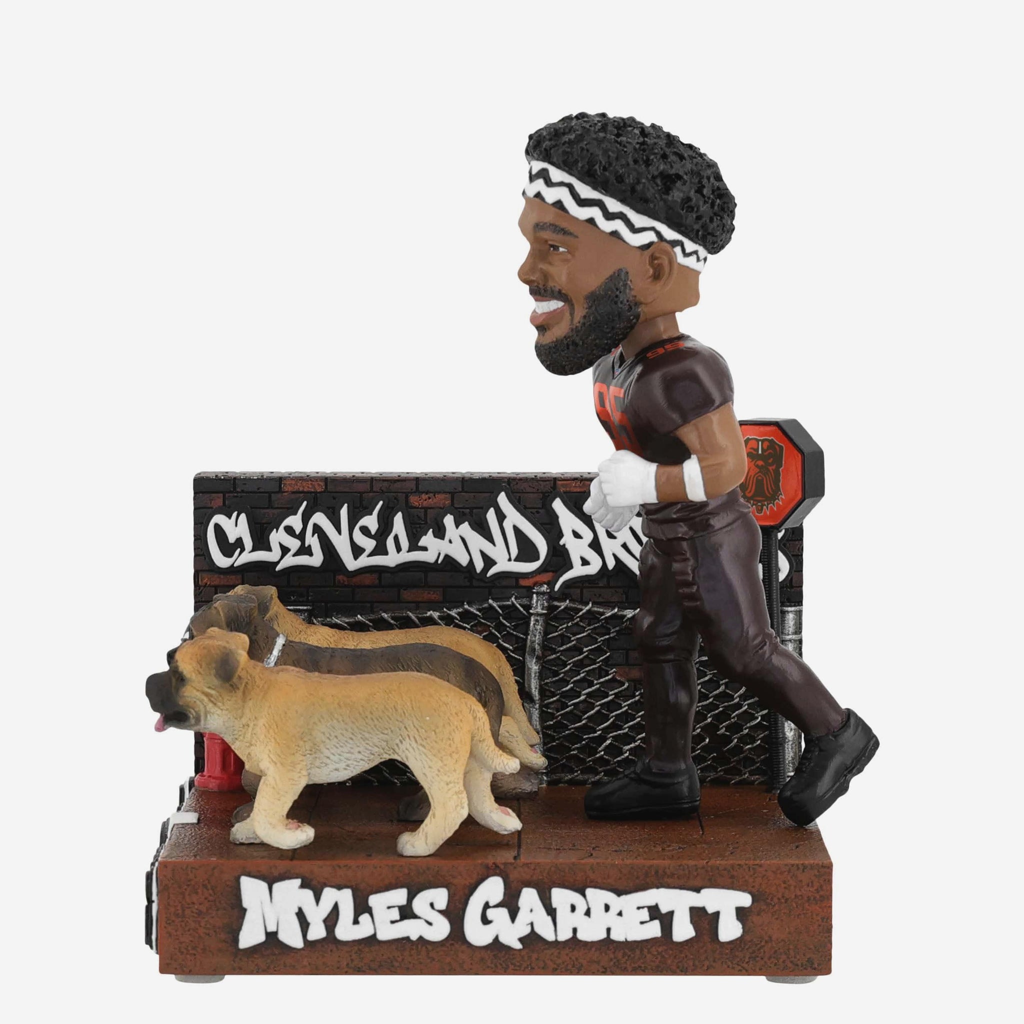 Alpha attitude. Dawg Pound dominance. Bring the bite to your shelf with this Myles Garrett Cleveland Browns Alpha Dog Alternate Uniform Bobblehead.