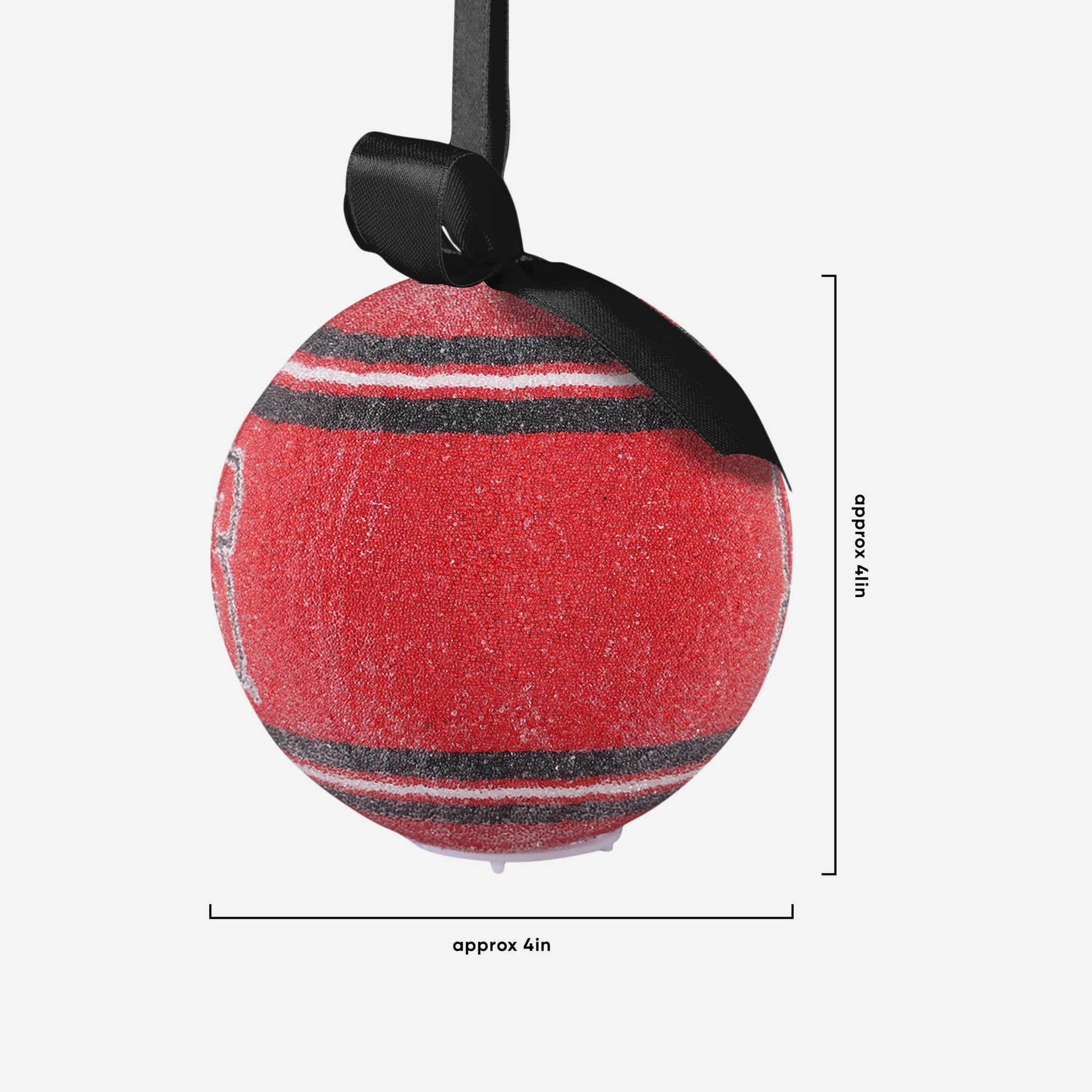 - Team-colored stripe accents on top and bottom of ornament to make your tree look extra awesome