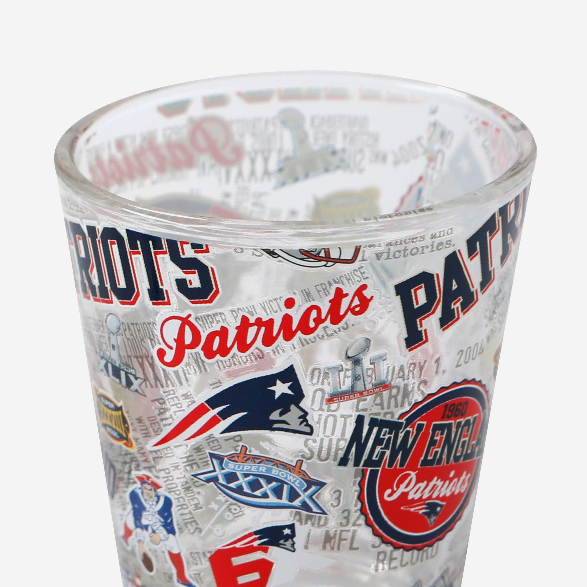 - Third glass features all-over repeat design with team logo displays and thematic team-specific elements throughout that will really get the party started