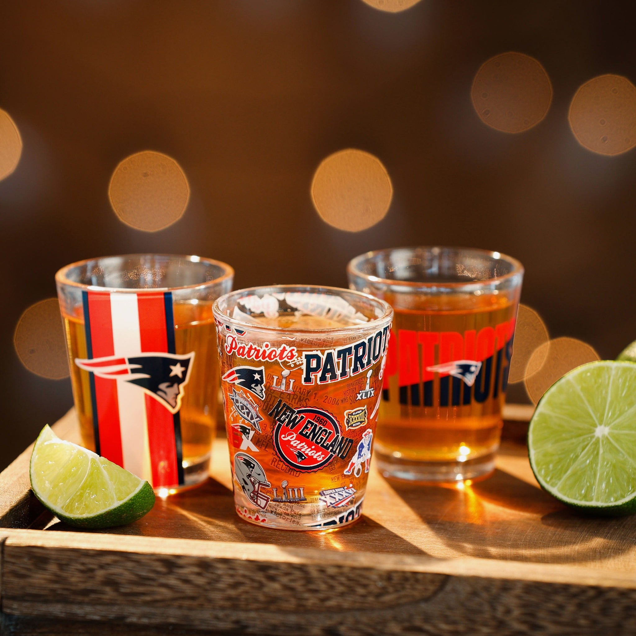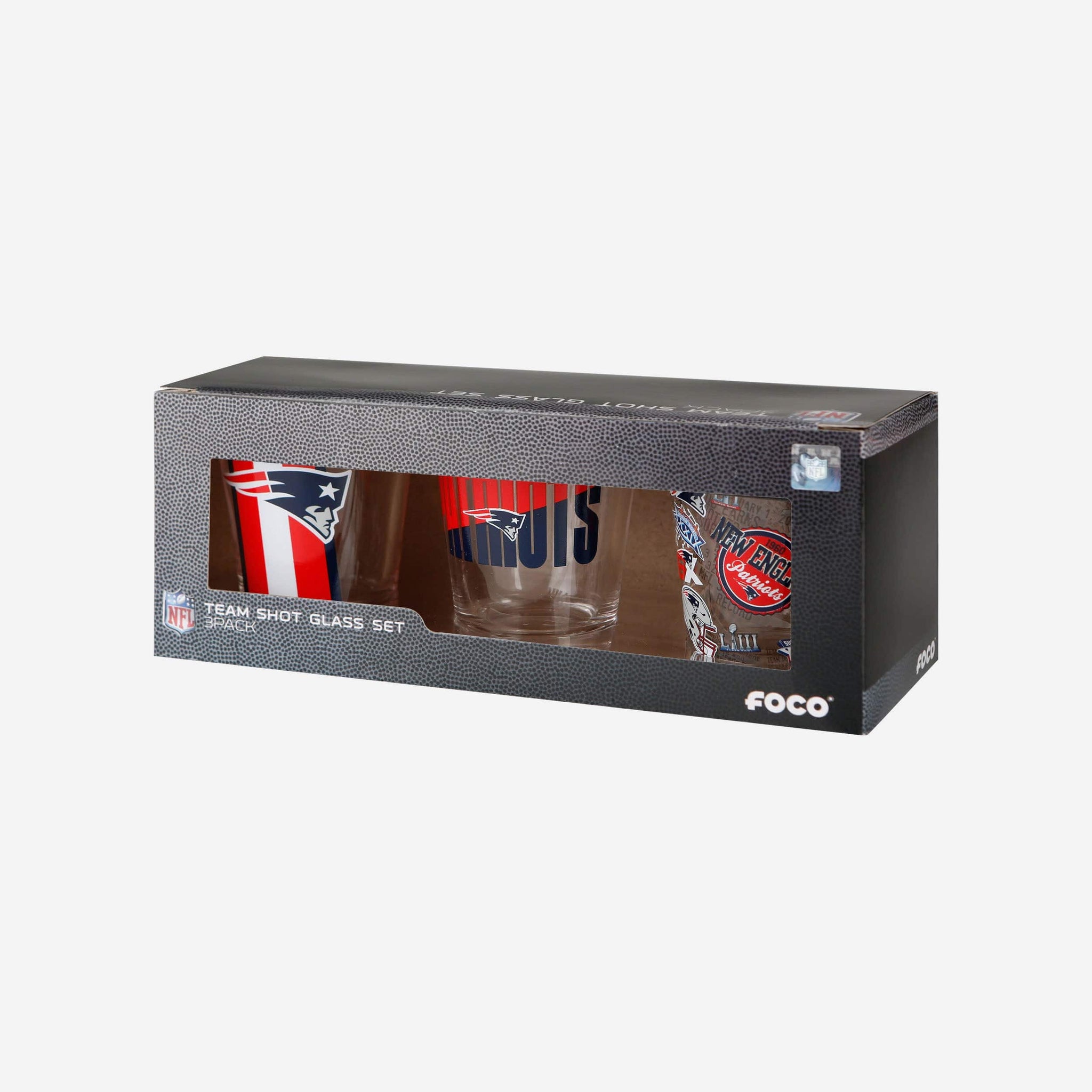 Gameday meets the night life. The New England Patriots 3 Pack Shot Glass is the perfect addition to the fancave of the mixologist in your life.