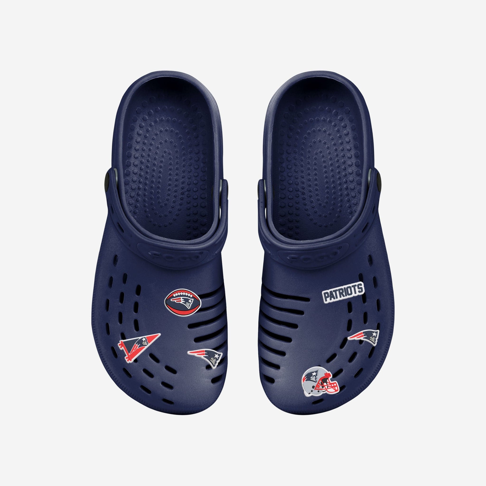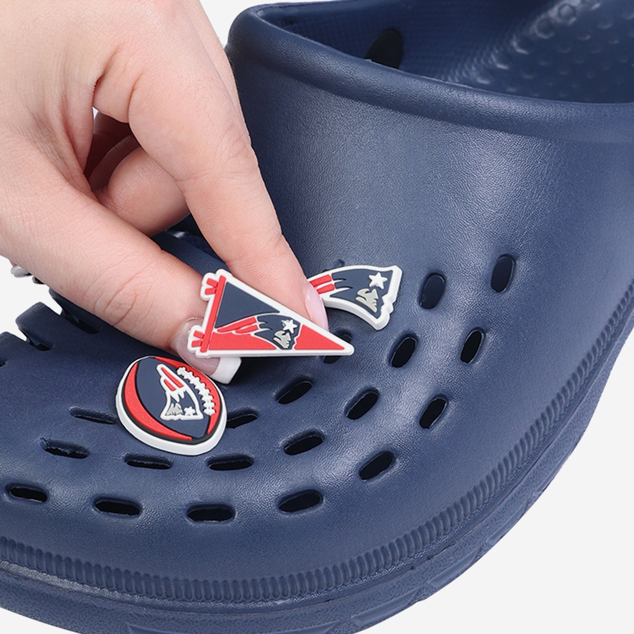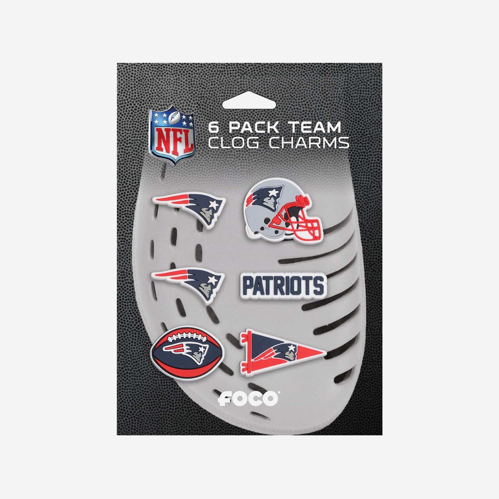 Footwear meets fashion in a whole new way! Taking your fit from drab to fab is as simple as snapping in these New England Patriots 6 Pack Team Clog Charms.