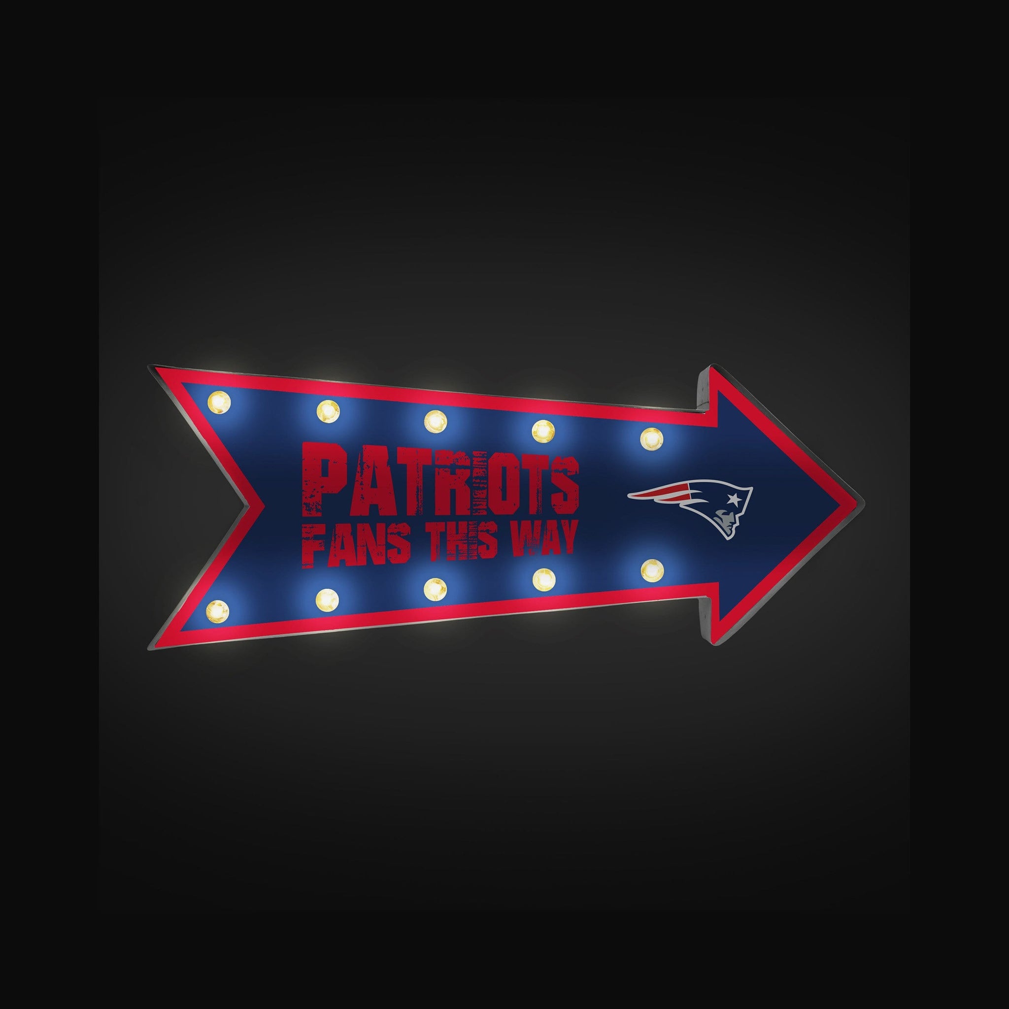 Having some friends over for the big game? Point them in the right direction with this New England Patriots Arrow Marquee Sign. It'll look great in your fancave, and shines as bright as your fandom.
