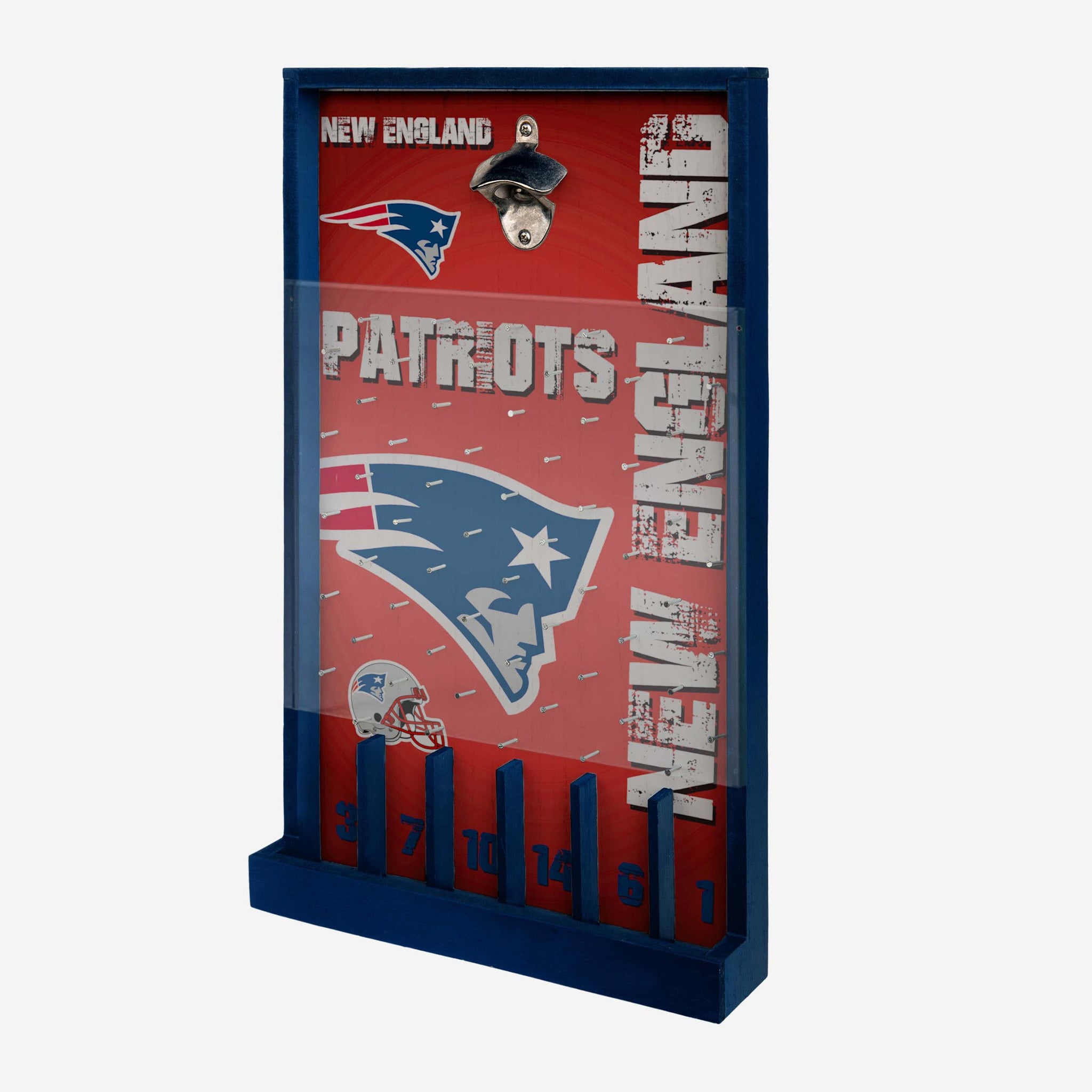 There's nothing better than relaxing in the fancave, enjoying a cold beverage, and watching the game. Nothing, of course, except doing all of that while opening your cold beverage with this New England Patriots Bottle Opener Sign Game. Pop the cap, watch it fall, track your score, and be a winner when your friends come over for the game.