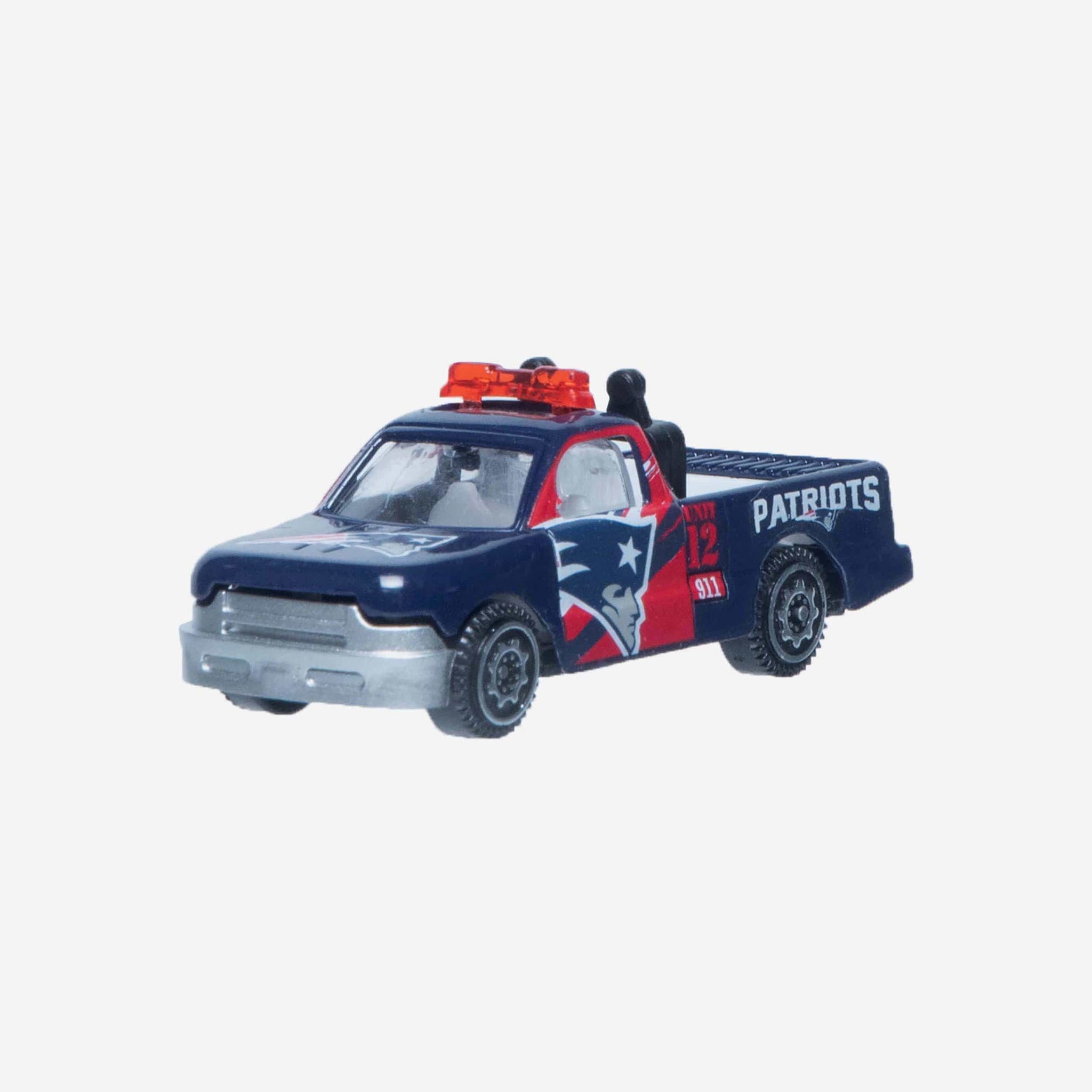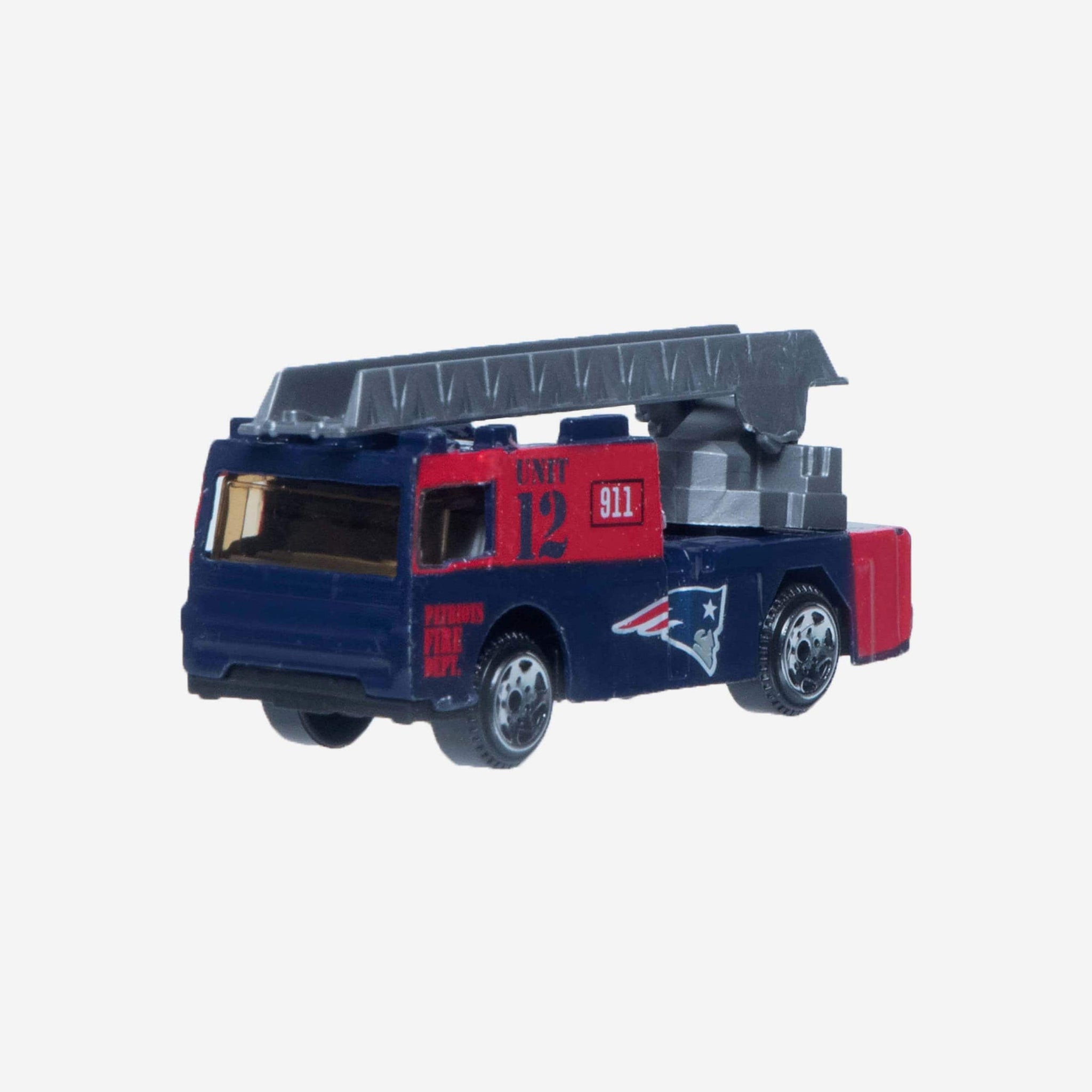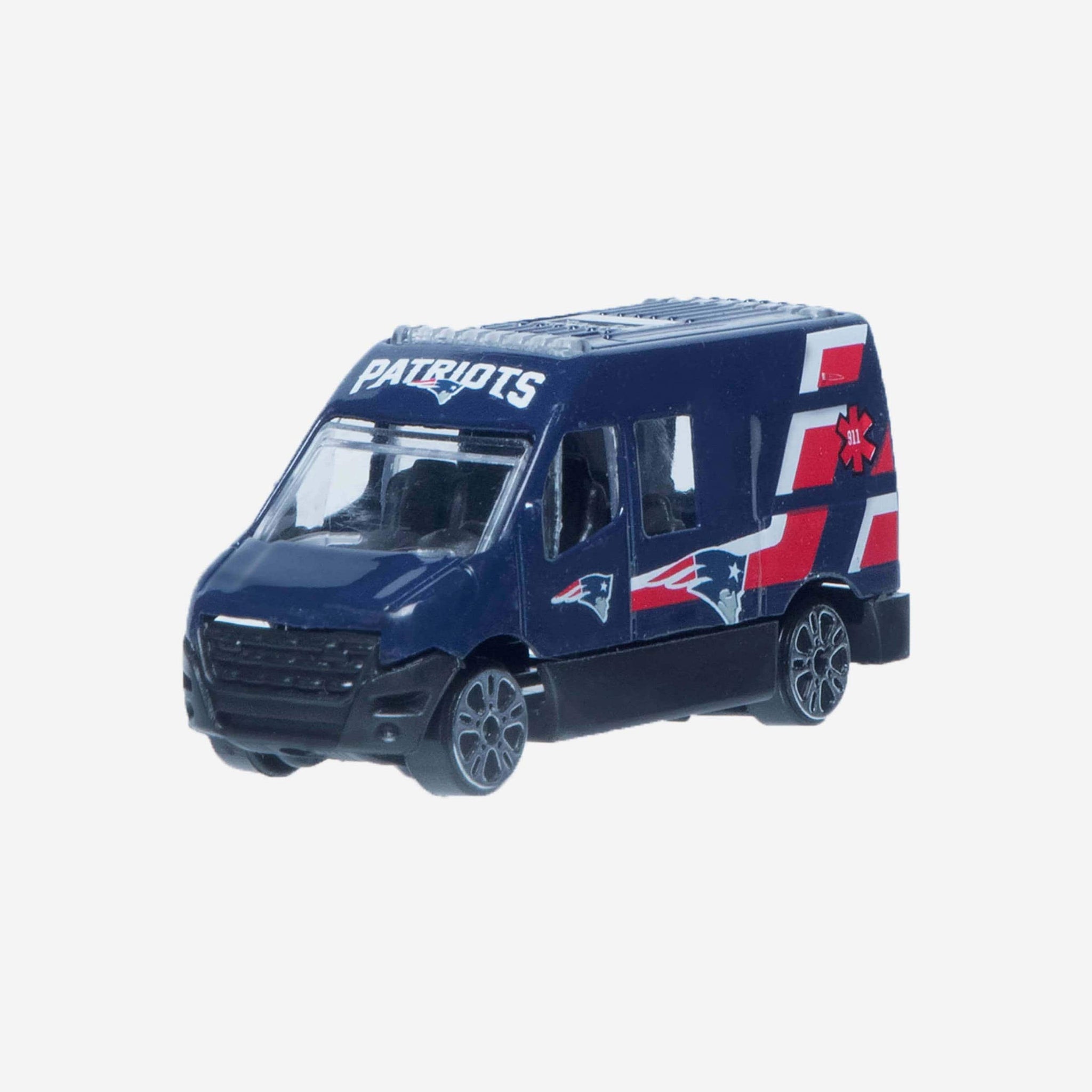 Vroom vroom. Fuel up for fandom with this New England Patriots 4 Pack Die Cast Cars. Each set includes an ambulance, a fire truck, a bus, and an emergency pickup truck decked out in your team colors, so you'll be the coolest fan on the road. Figuratively speaking. Because they're not street legal. But they'll look great on your desk.
