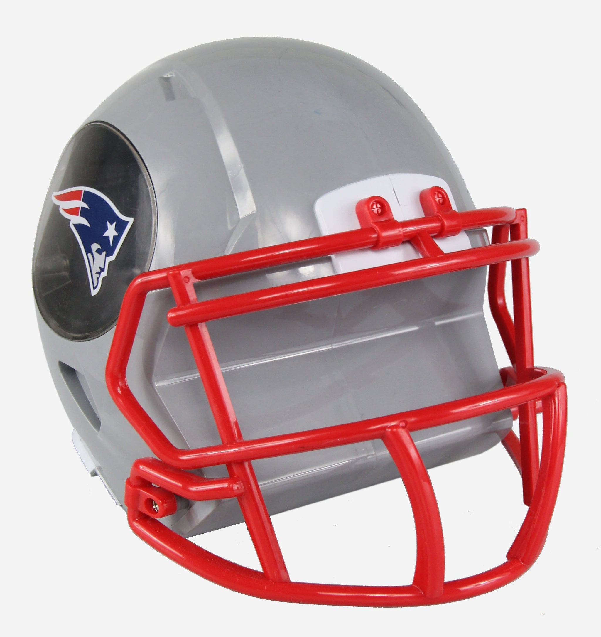 Helmets protect football player's heads. This New England Patriots ABS Helmet Bank protects your spare change. Boom.