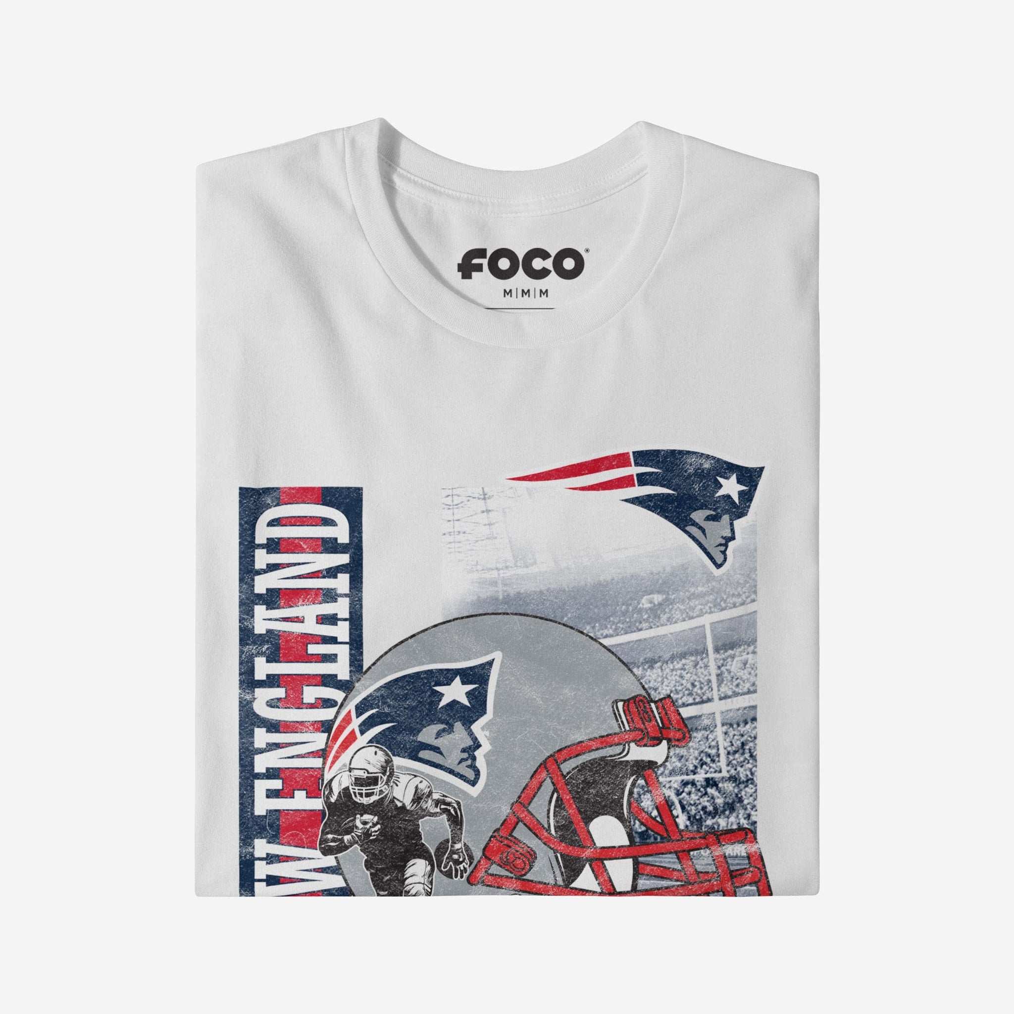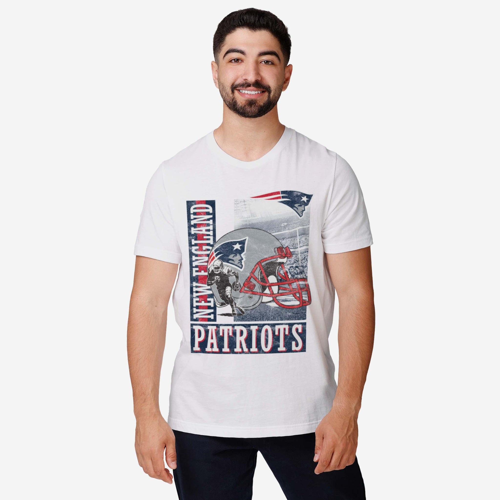 Make a dash for the endzone with a legendary addition to your fan fit! Score big on style and team pride with the New England Patriots Helmet Dash T-Shirt.