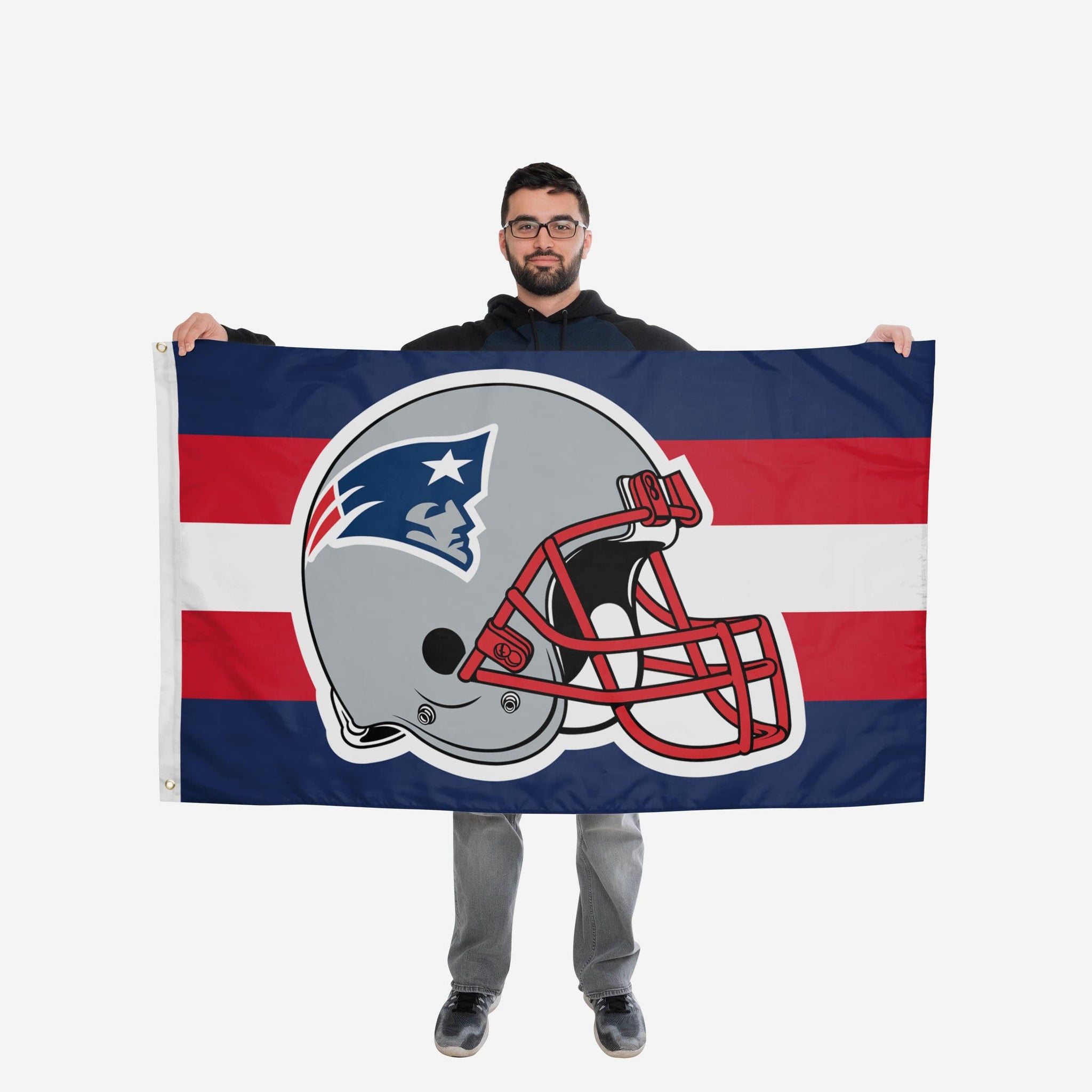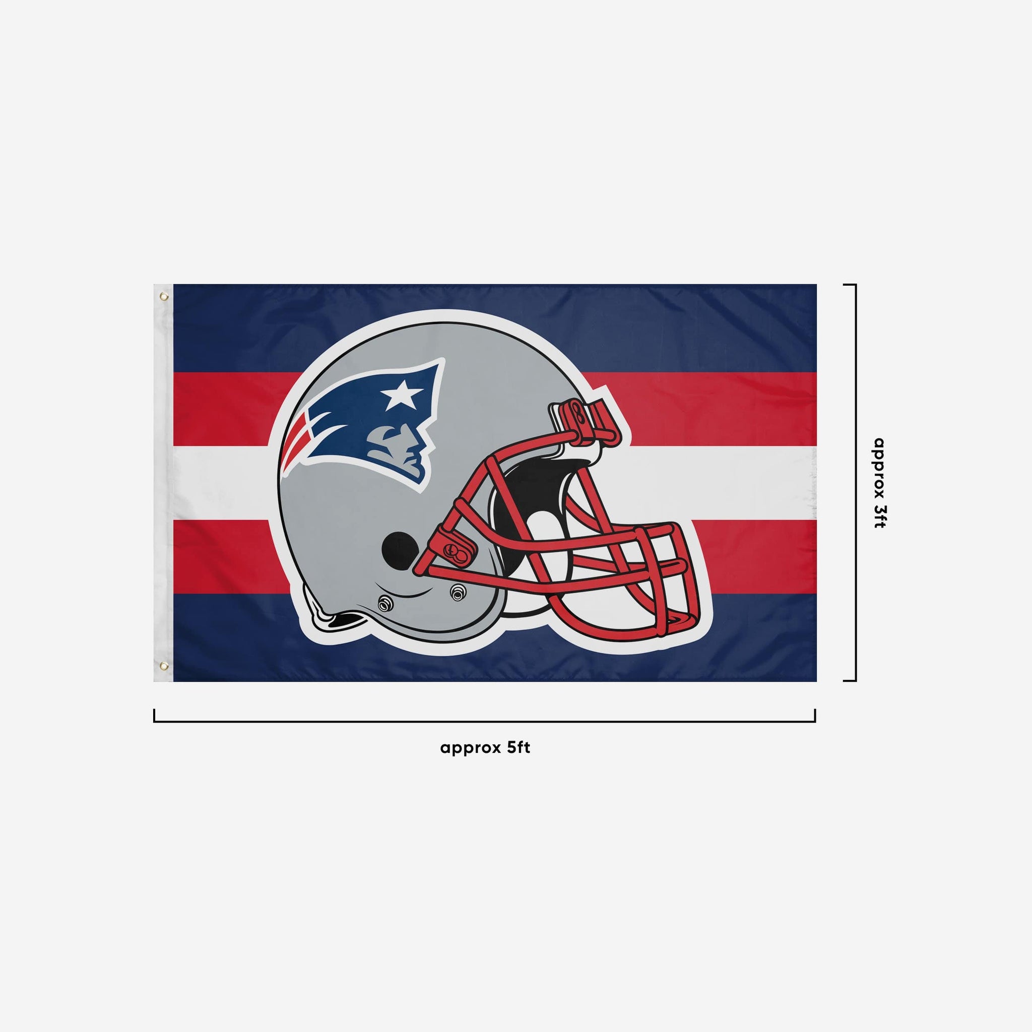 Just like how a helmet is necessary for a football player's gameday attire, this New England Patriots Helmet Horizontal Flag is necessary for every legendary fancave on gameday!