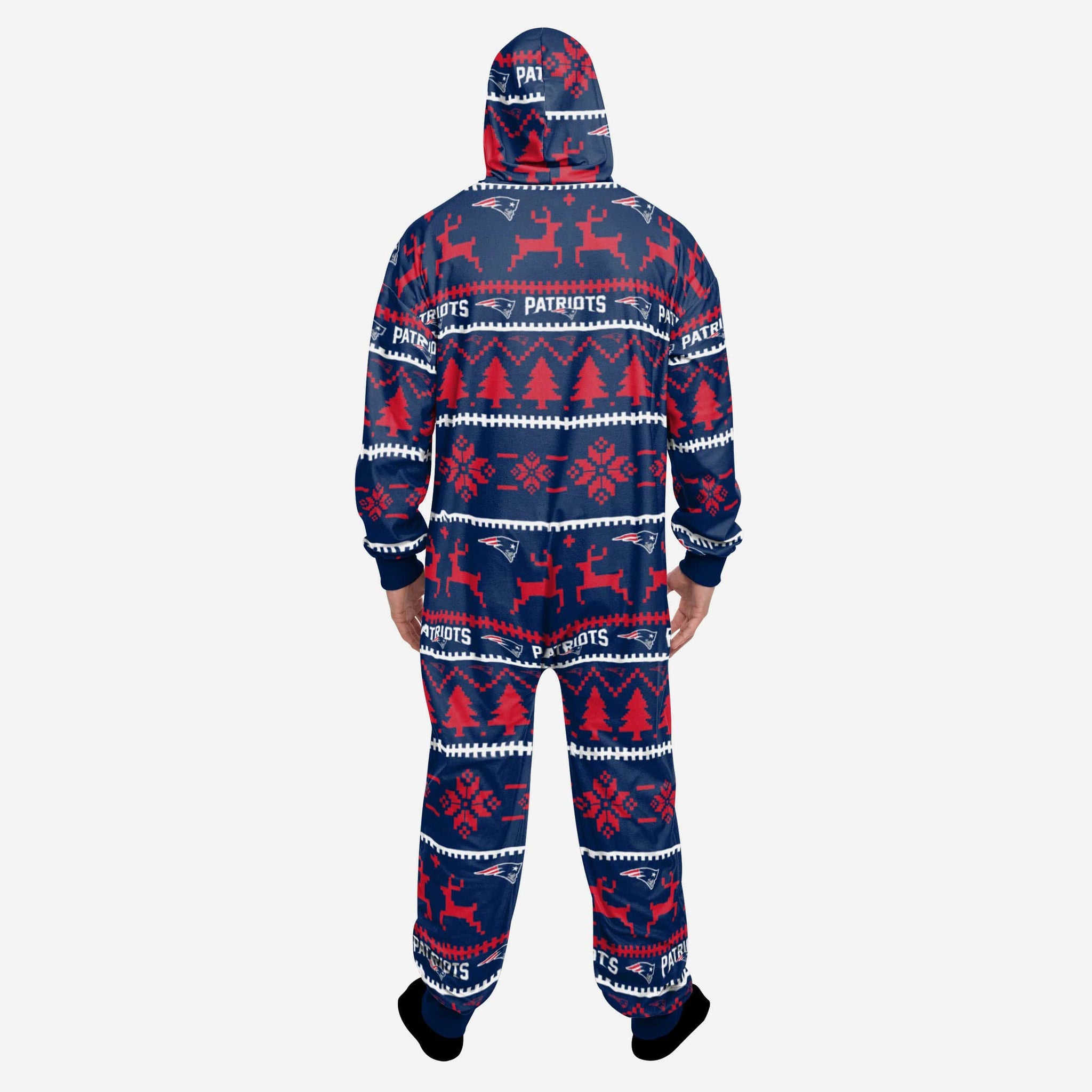 Your new gameday attire has arrived. Whether you're in the stadium, at the tailgate, or just hanging out at home, you're gonna love watching the game in these New England Patriots Holiday Onesie Pajamas.
