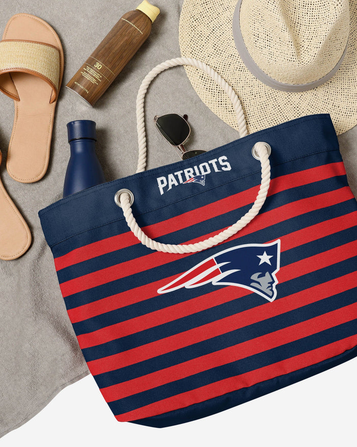 You're a real fan. You've earned your stripes. Now you can show them off AND carry the team with this New England Patriots Nautical Stripe Tote Bag.