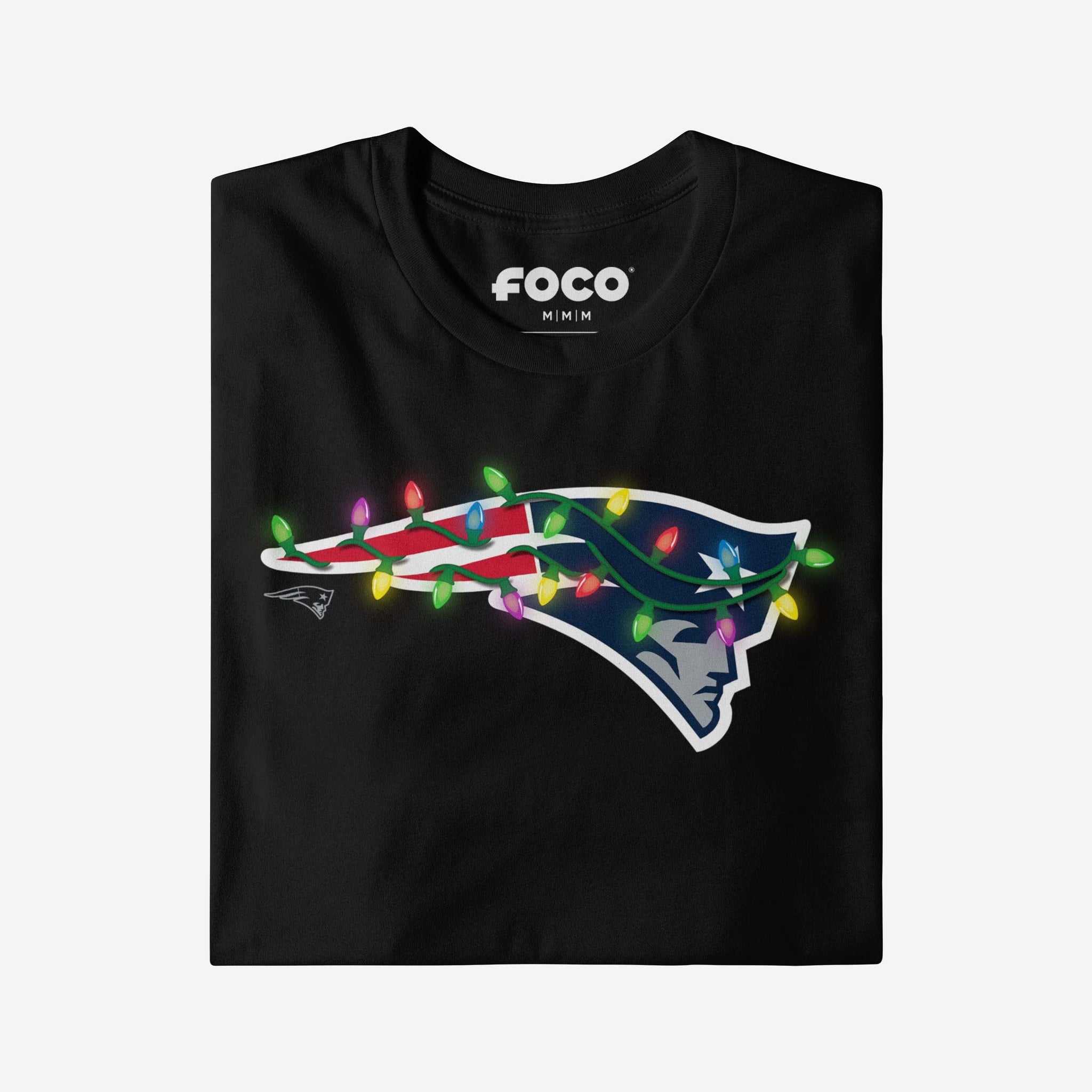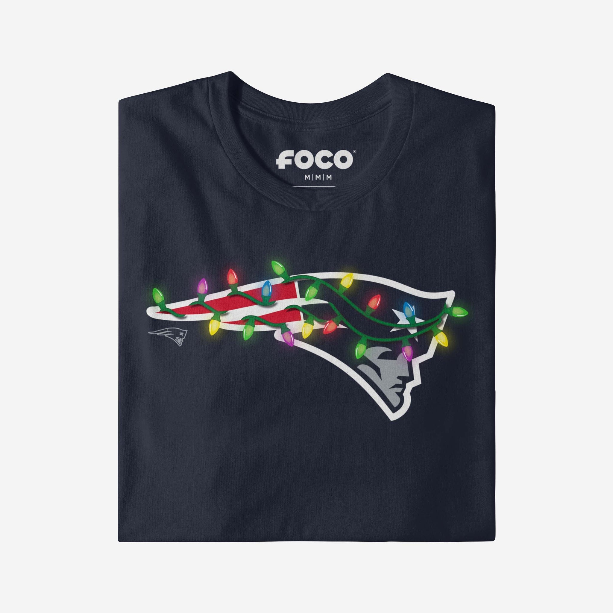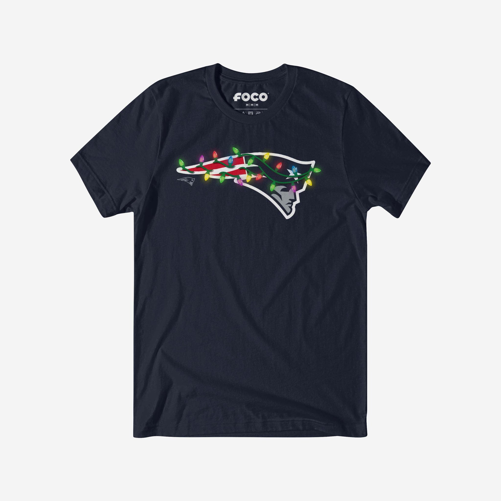 Merry, bright, and full of team spirit! Let your fandom light the way to a legendary holiday season with this New England Patriots Primary Logo Holiday Lights T-Shirt.