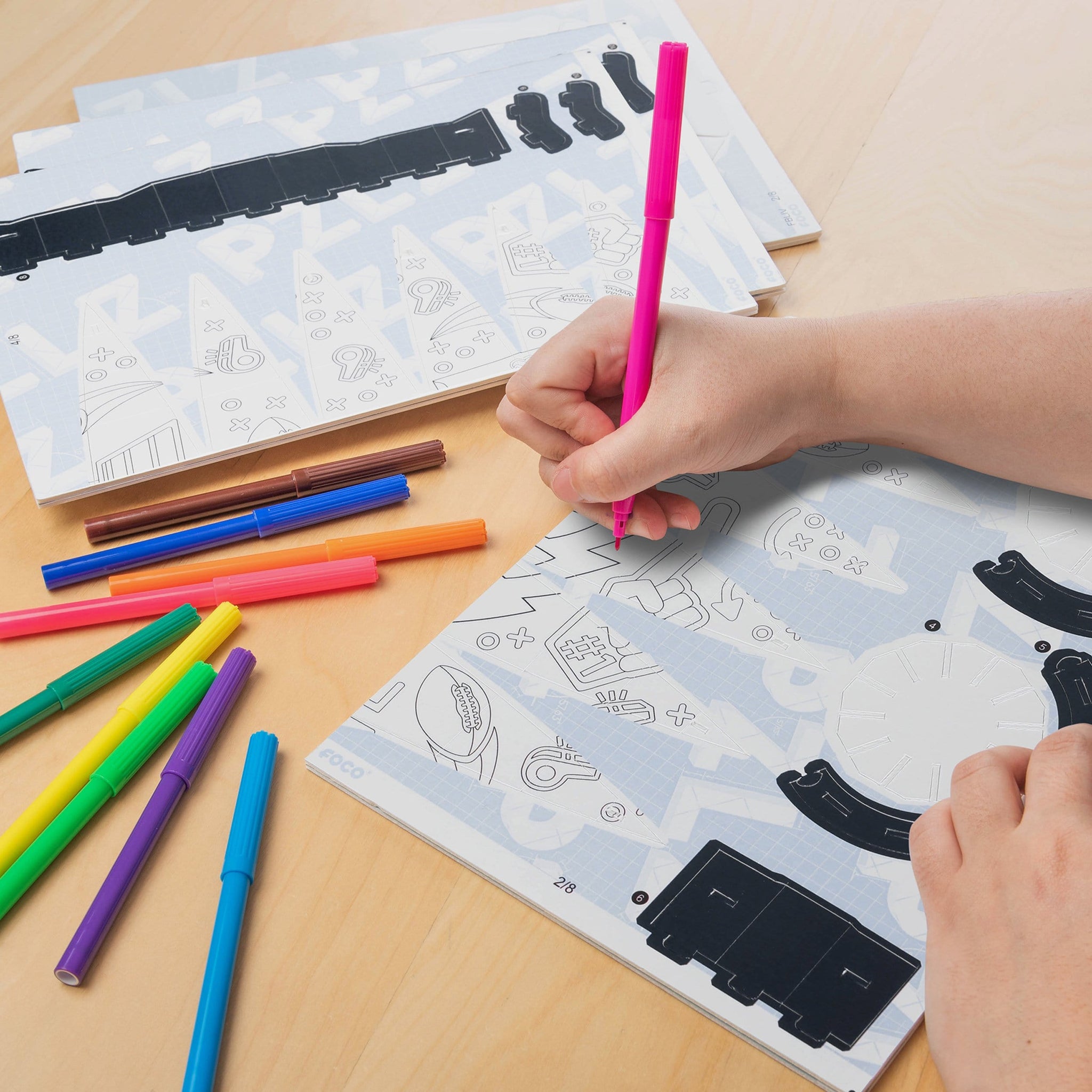 • Set of colored markers included so you can show off your vibrant, colored creation
