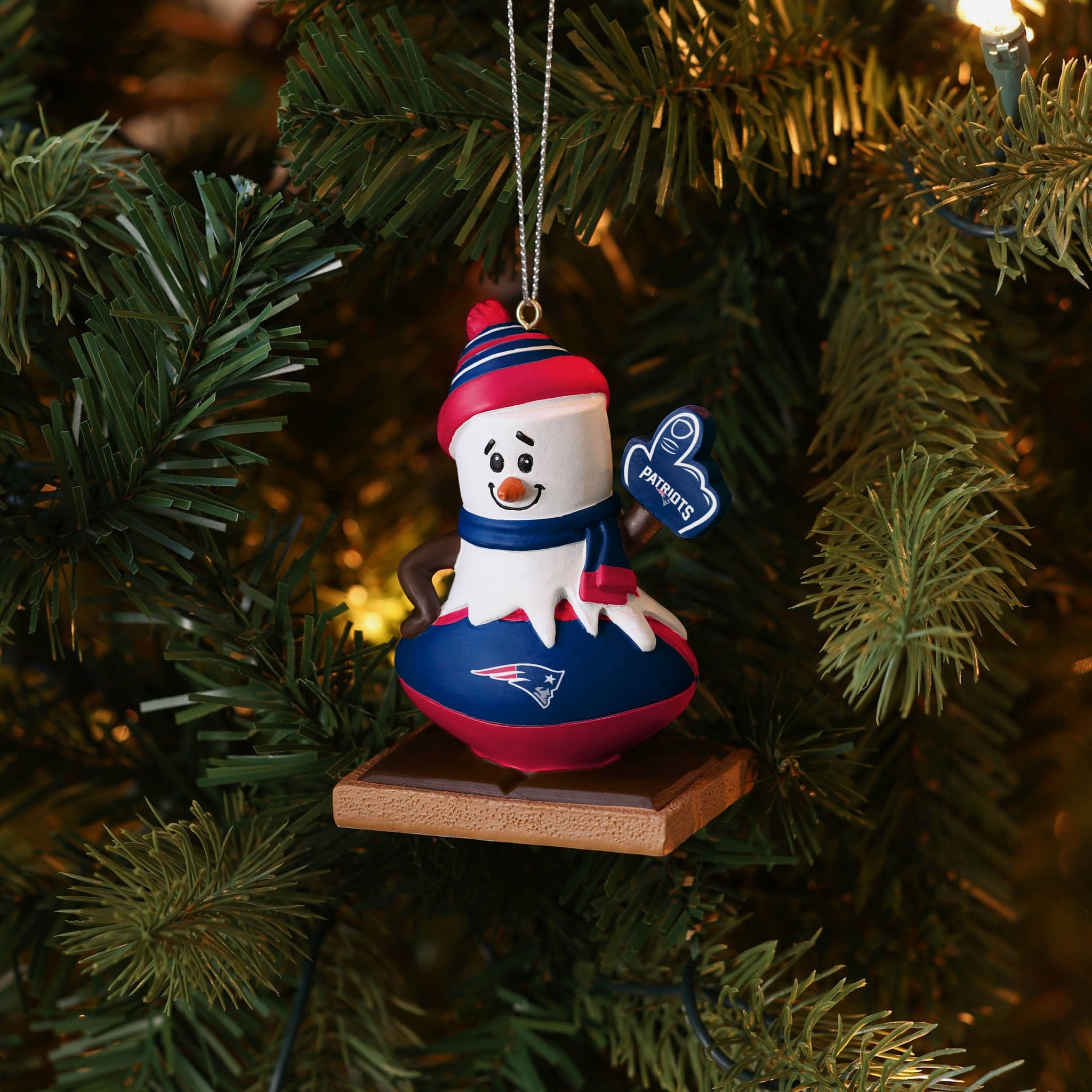 Ingredients for the perfect s'more: Graham crackers, chocolate, marshmallows… and team spirit. Enjoy s'more wins around the holidays by showing off this New England Patriots Smore on Ball Ornament.