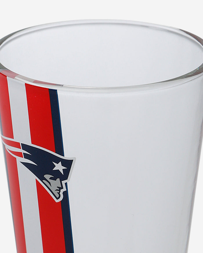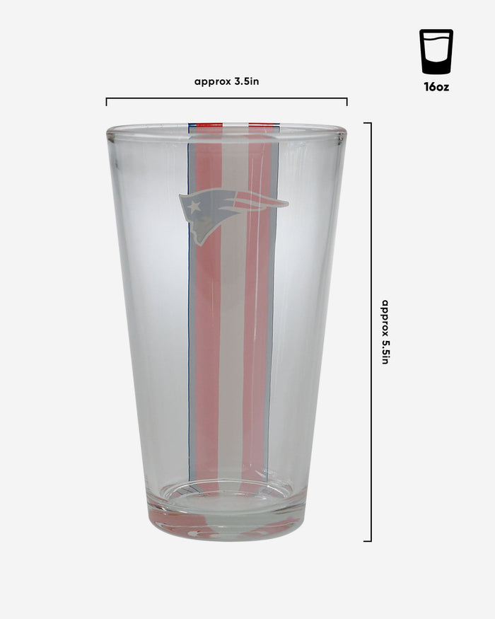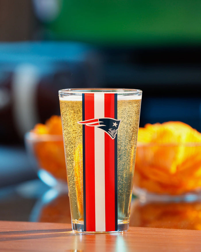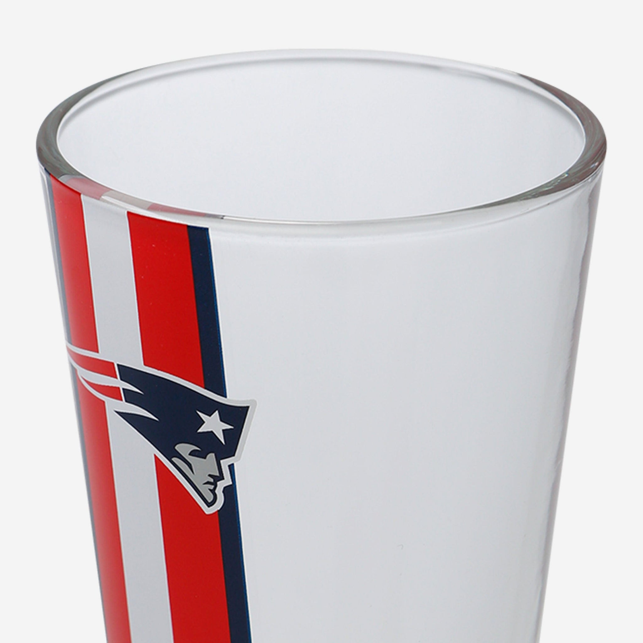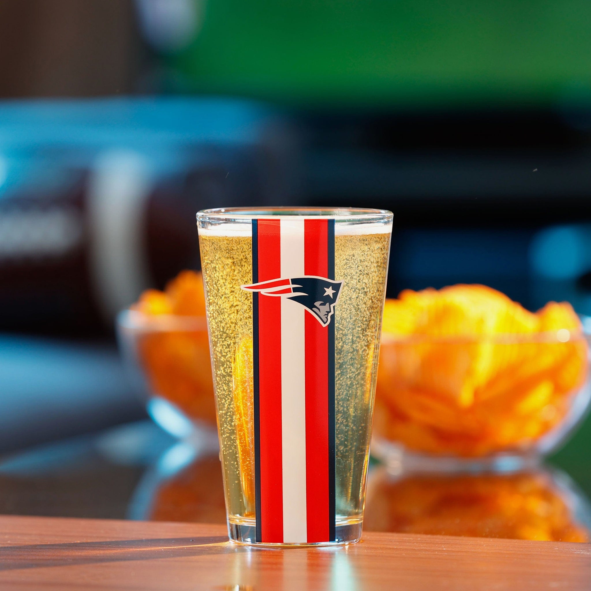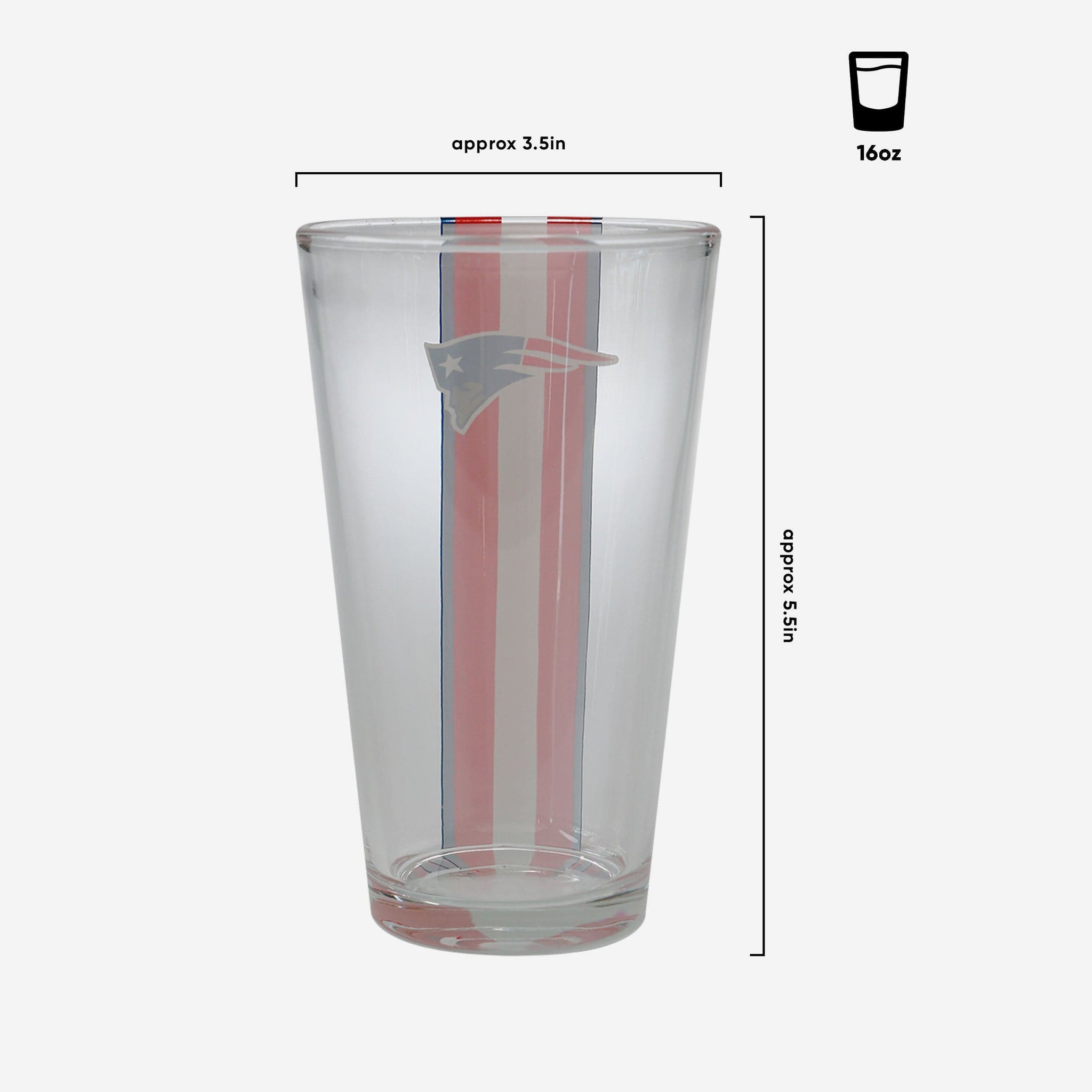 You're a glass half full type of fan. So are we. Now, let's raise that glass and get ready for victory after victory with this New England Patriots Team Stripe Pint Glass.