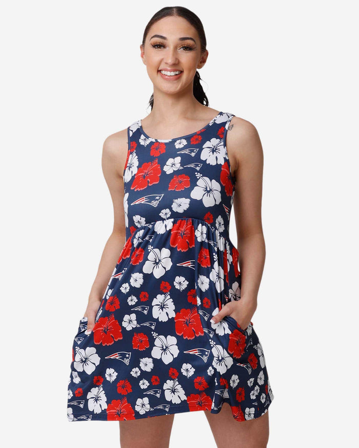 The season of fan is in bloom. Make sure your vibrant, unmatched spirit is boldly on display by adding this New England Patriots Fan Favorite Floral Sun Dress to your roster. Hope you're ready to turn some heads.