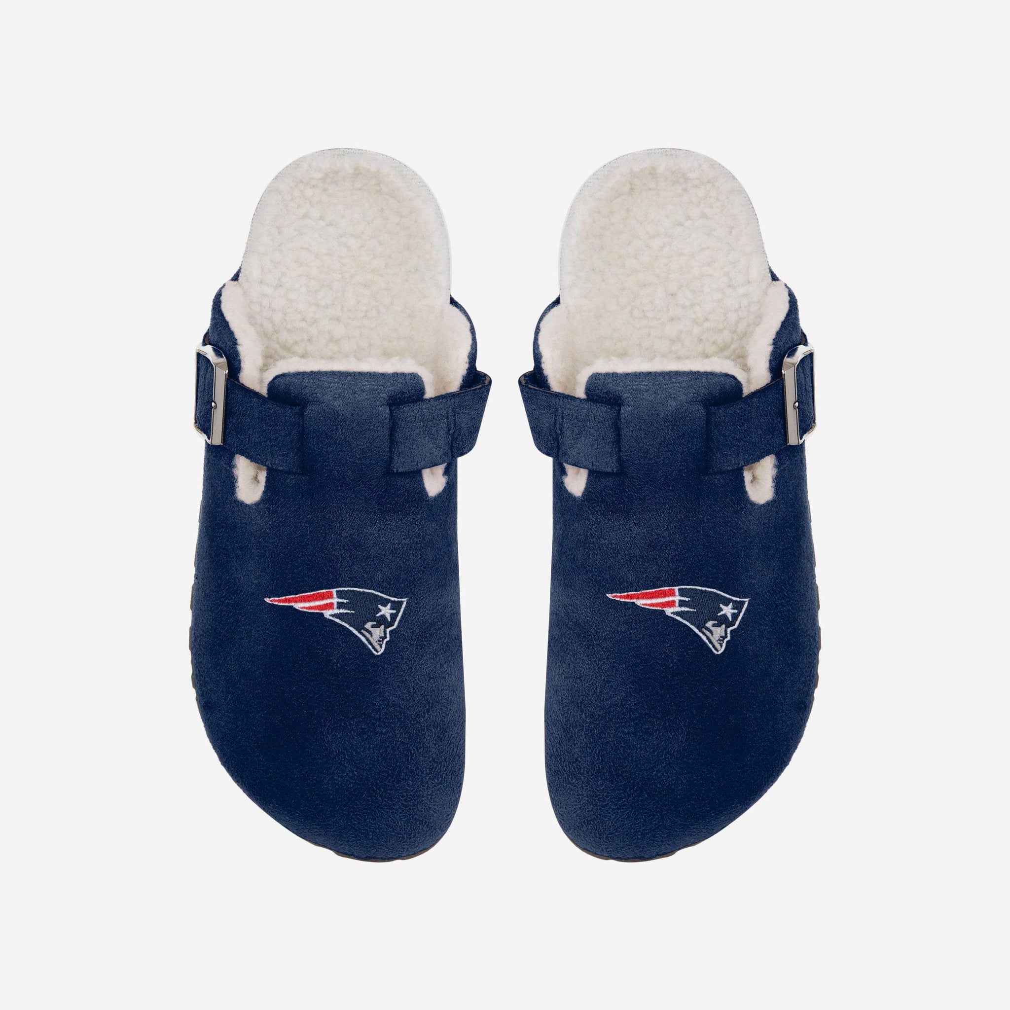 Buckle up for greatness! Get your clog on and make those lazy Sundays at home even more enjoyable with these New England Patriots Women's Fur Buckle Clog Slippers!