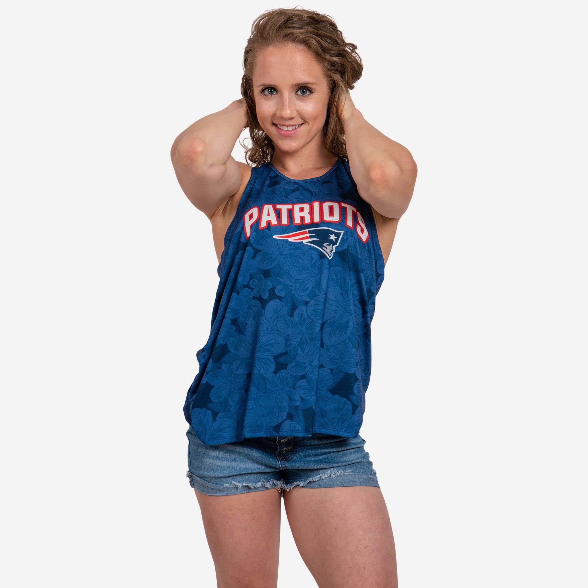 What this New England Patriots Women's Hibiscus Twist Back Sleeveless Top lacks in sleeves, it more than makes up for in fresh, floral fandom. And sleeves are overrated, anyway.