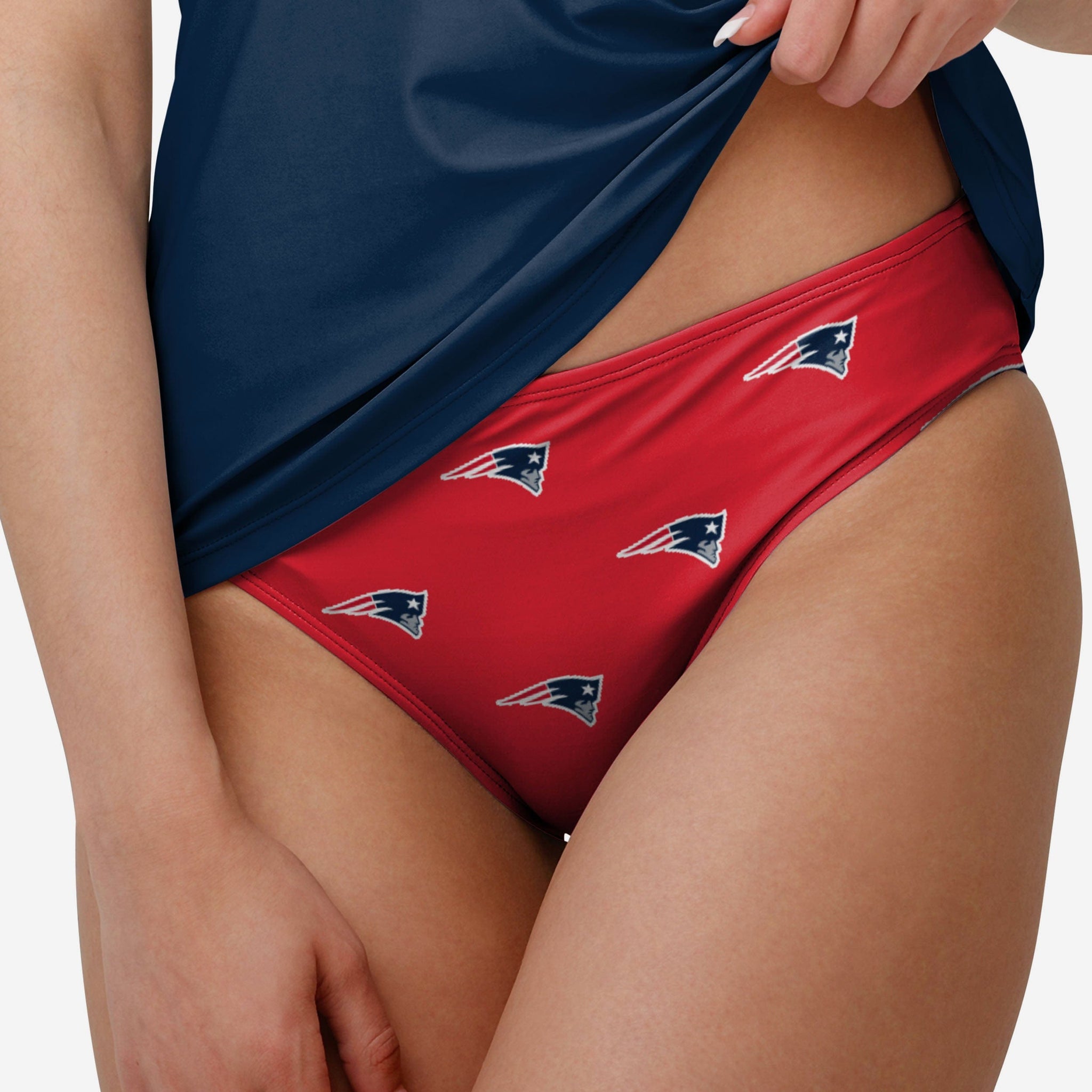 Trying to beat the sweltering heat? Dive into the deep end of the fan pool with this New England Patriots Women's Summertime Mini Print Bikini Bottom.