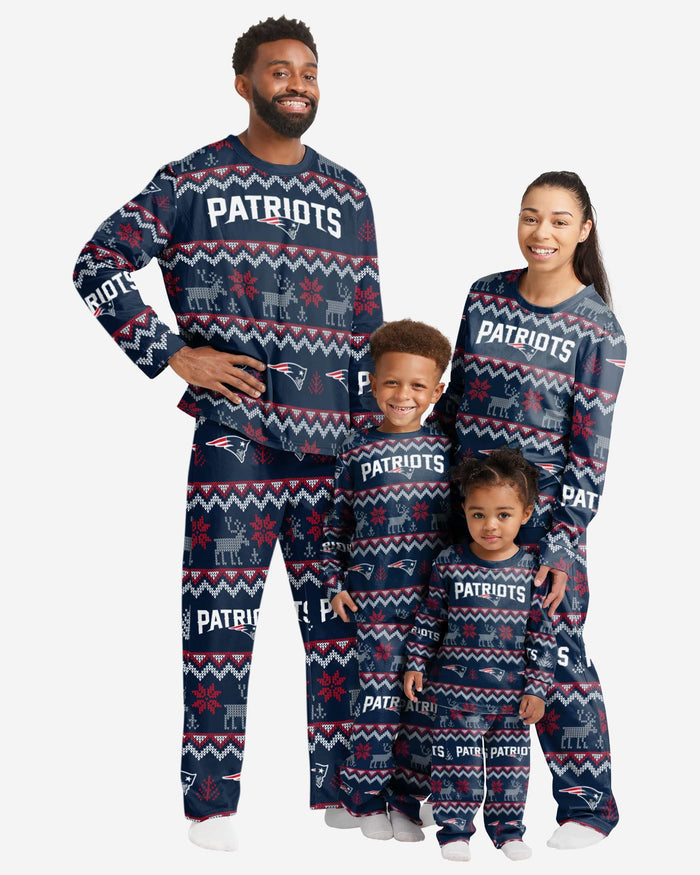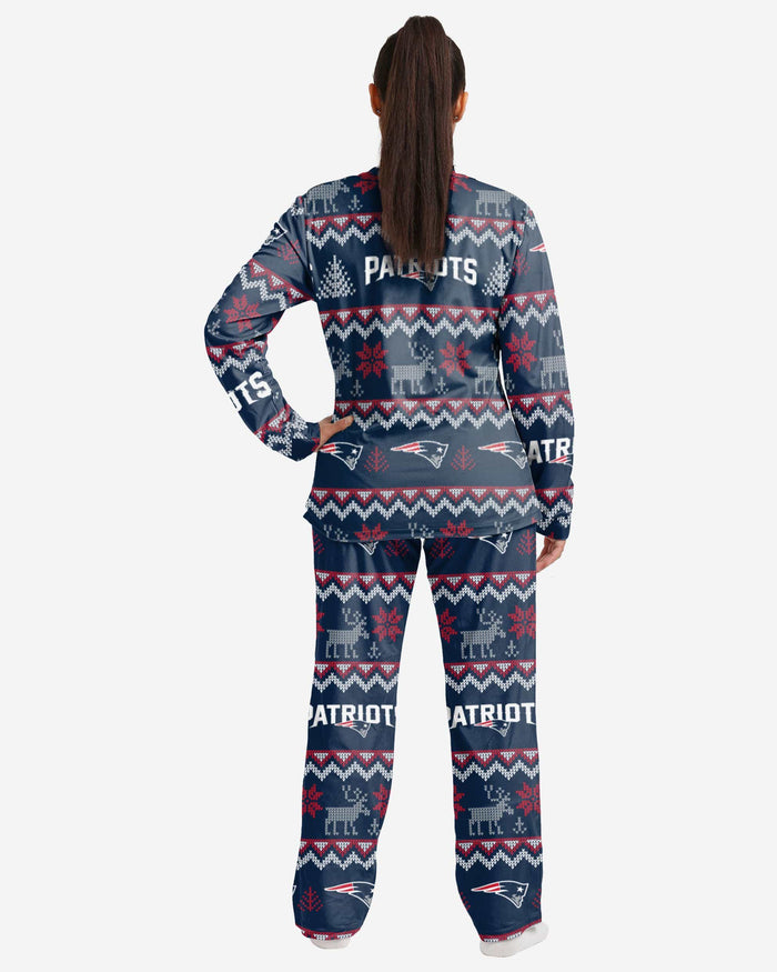 New England Patriots Womens Ugly Pattern Family Holiday Pajamas FOCO - FOCO.com