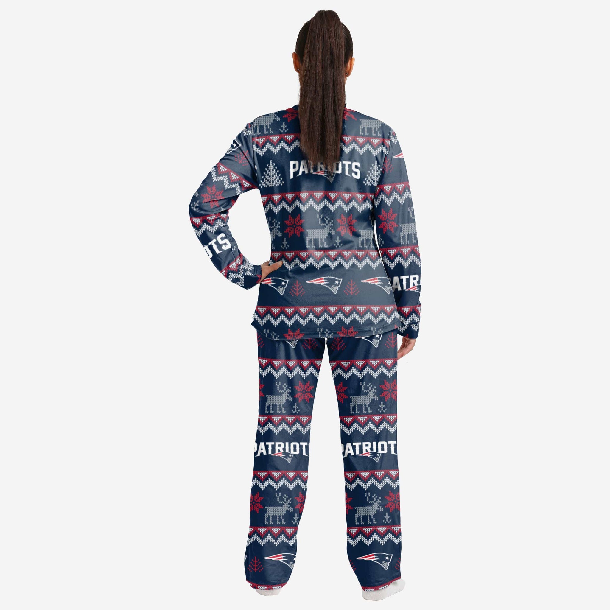 New England Patriots Womens Ugly Pattern Family Holiday Pajamas FOCO S - FOCO.com