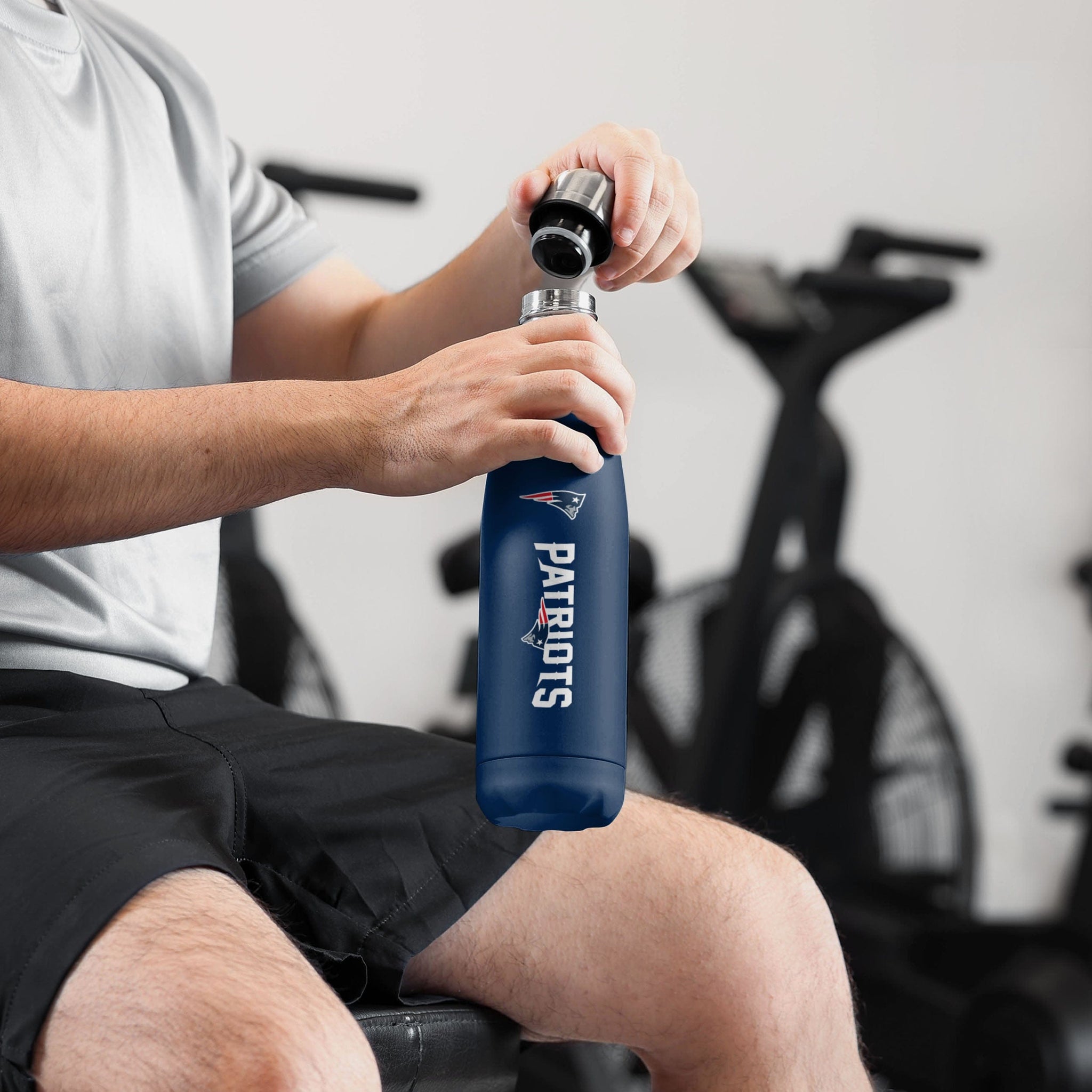 Even in the game's tensest moments, you want to stay calm, cool, and collected. This New England Patriots Team Color Wordmark Chill Water Bottle can help with the "cool" part.
