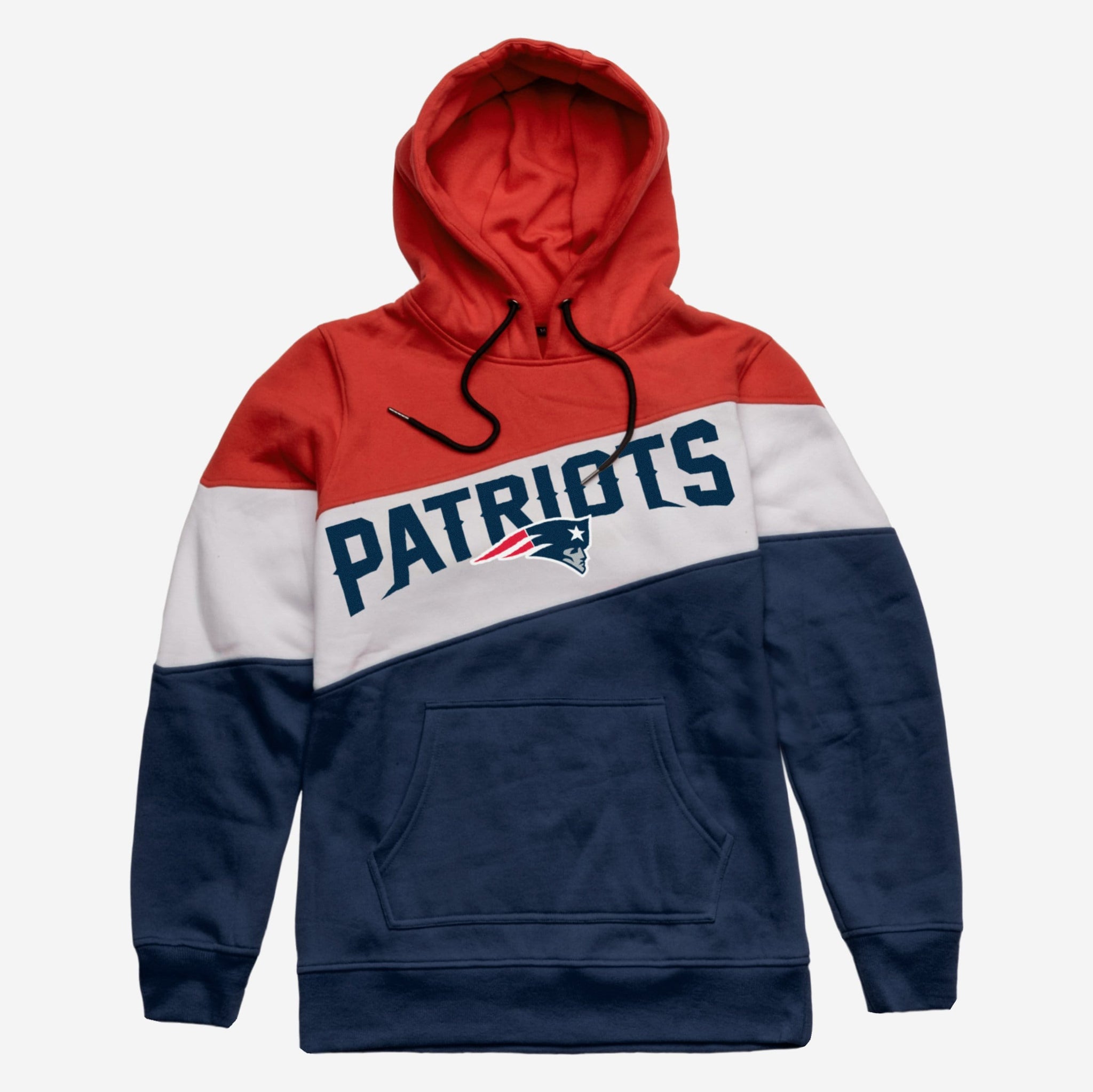 People like to say, "It's all good in the hood." But we prefer to say, "it's all goodie in the hoodie." Because everything will be great when you're wearing this New England Patriots Wordmark Colorblock Hoodie.