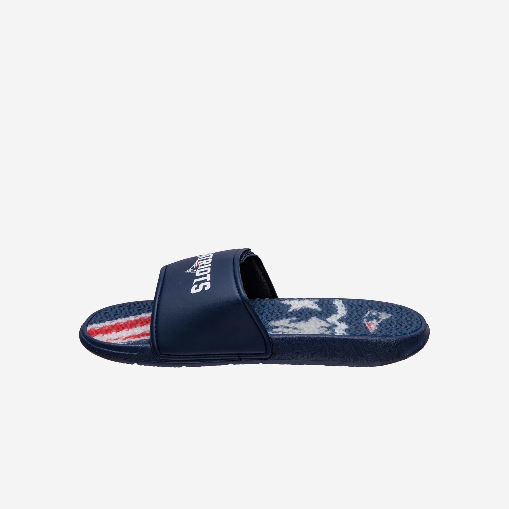 Whether you're at the game, hitting the beach, or enjoying a day at the pool, keeping your feet comfortable is just as important as showing off your fandom. You're in luck, because these New England Patriots Men's Wordmark Gel Slides can help you with both. Rep the team with every step.