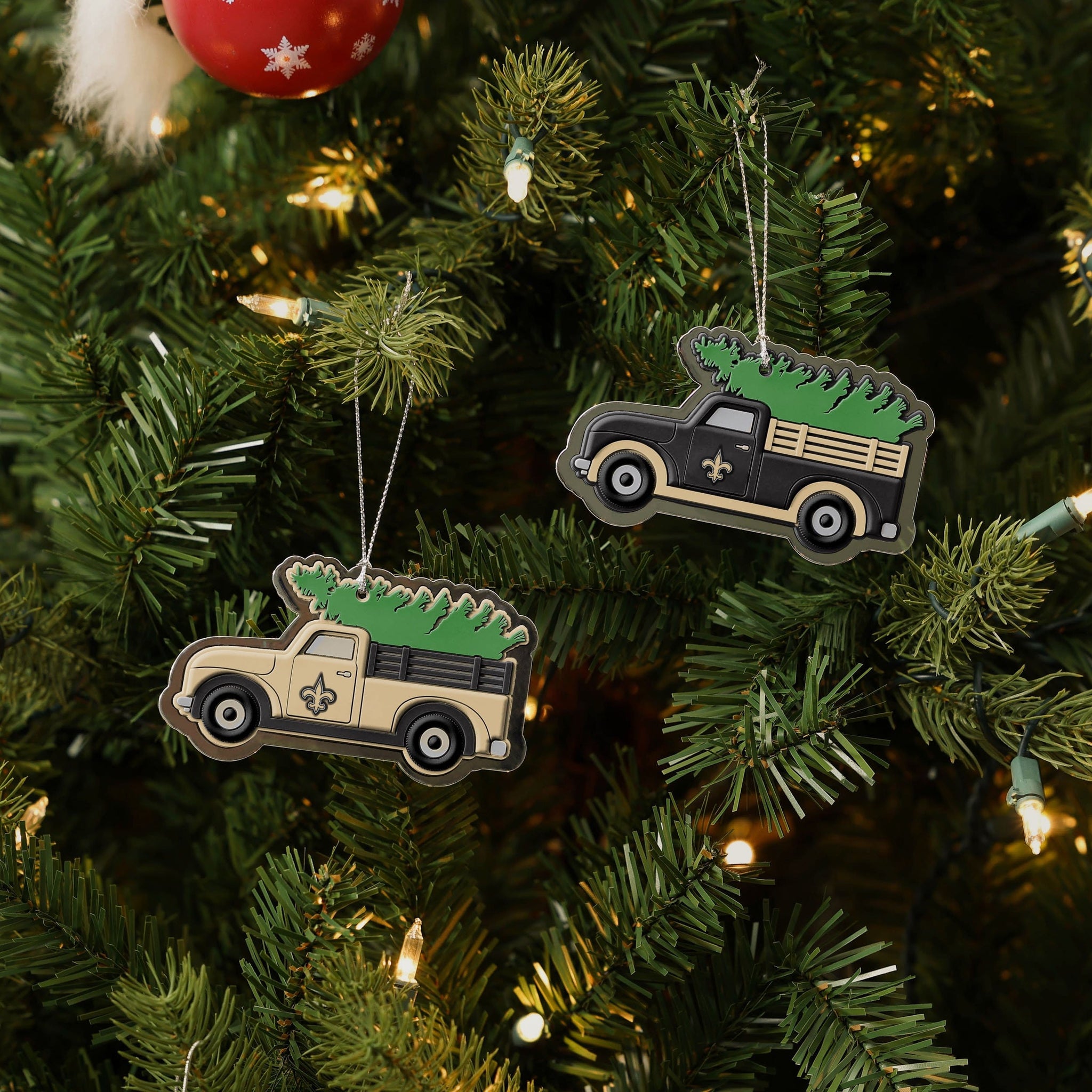 Keep on truckin'! It's all gas and no brakes this holiday season with these New Orleans Saints 2 Pack Flat Metal Truck Ornaments!