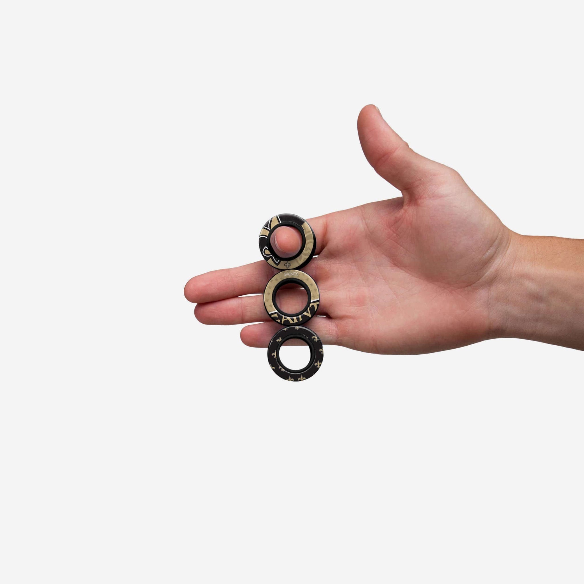 - Six-pack of magnetic spinner finger rings for sextuple the fun