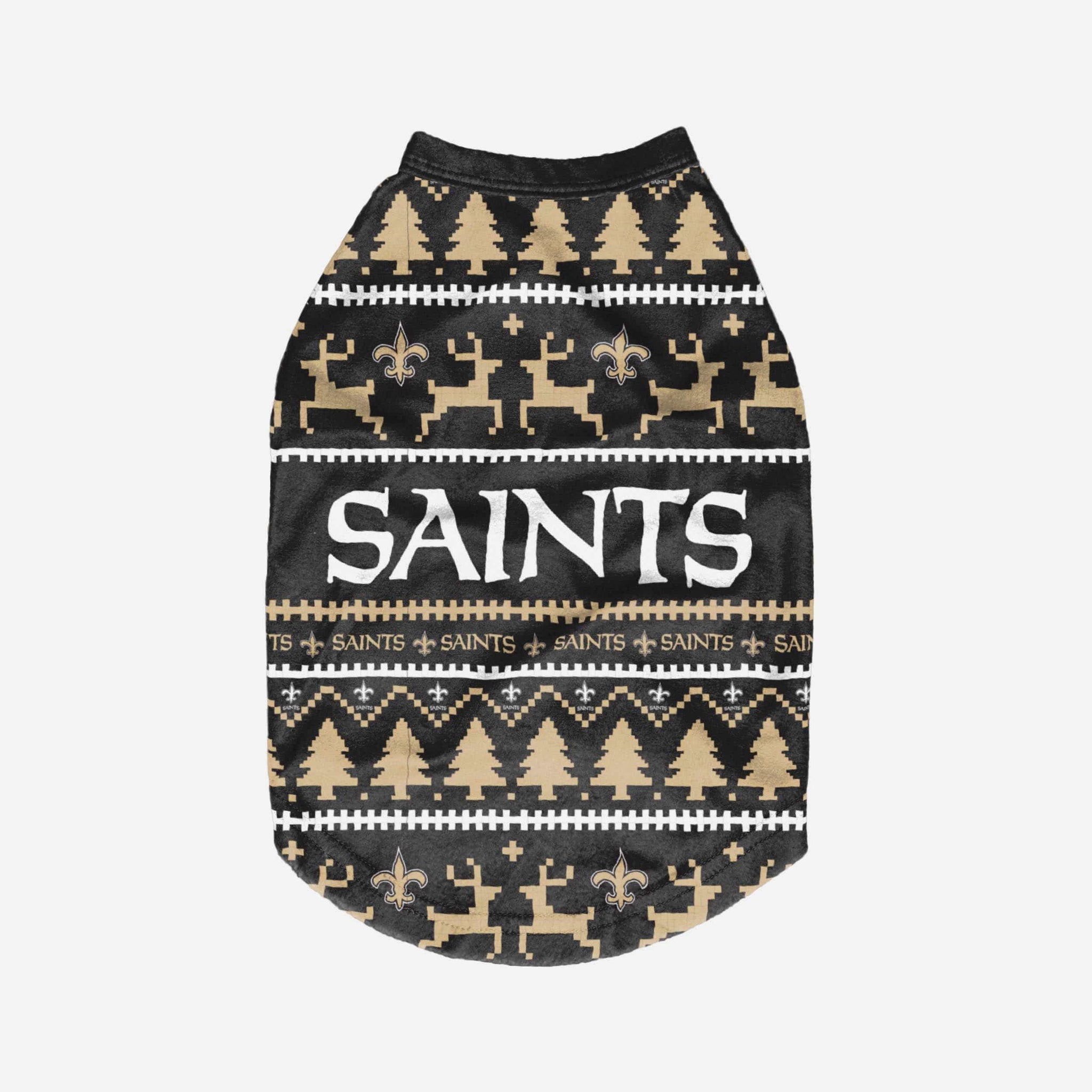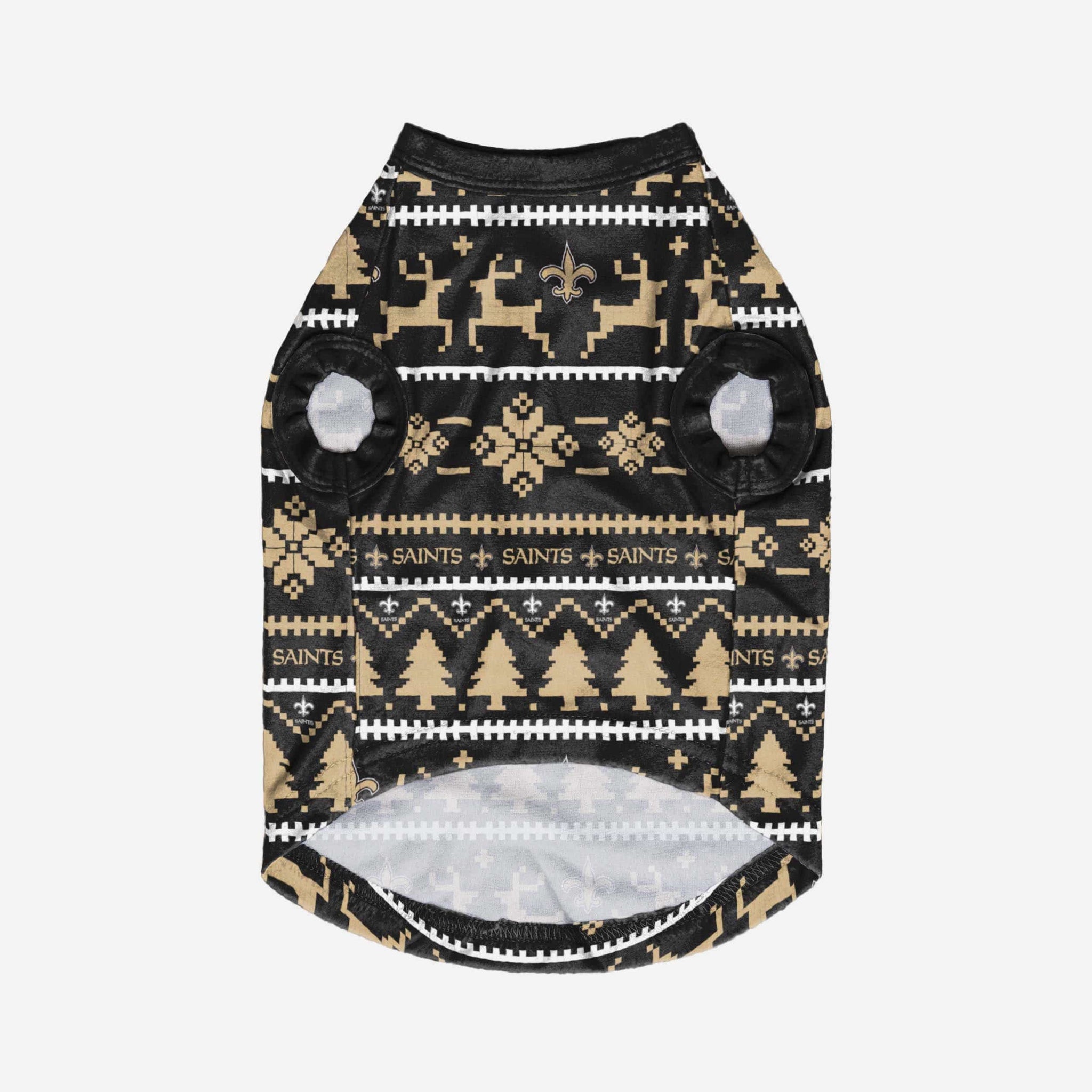 Show off your pet's holiday spirit with this dog sweater. Your good boy (or girl) will love this New Orleans Saints Dog Family Holiday Sweater so much, they'll be saying "woof bark awooo" (that's "thank you" in dog). Don't forget to match your canine's sweater with a set of matching holiday pajamas.