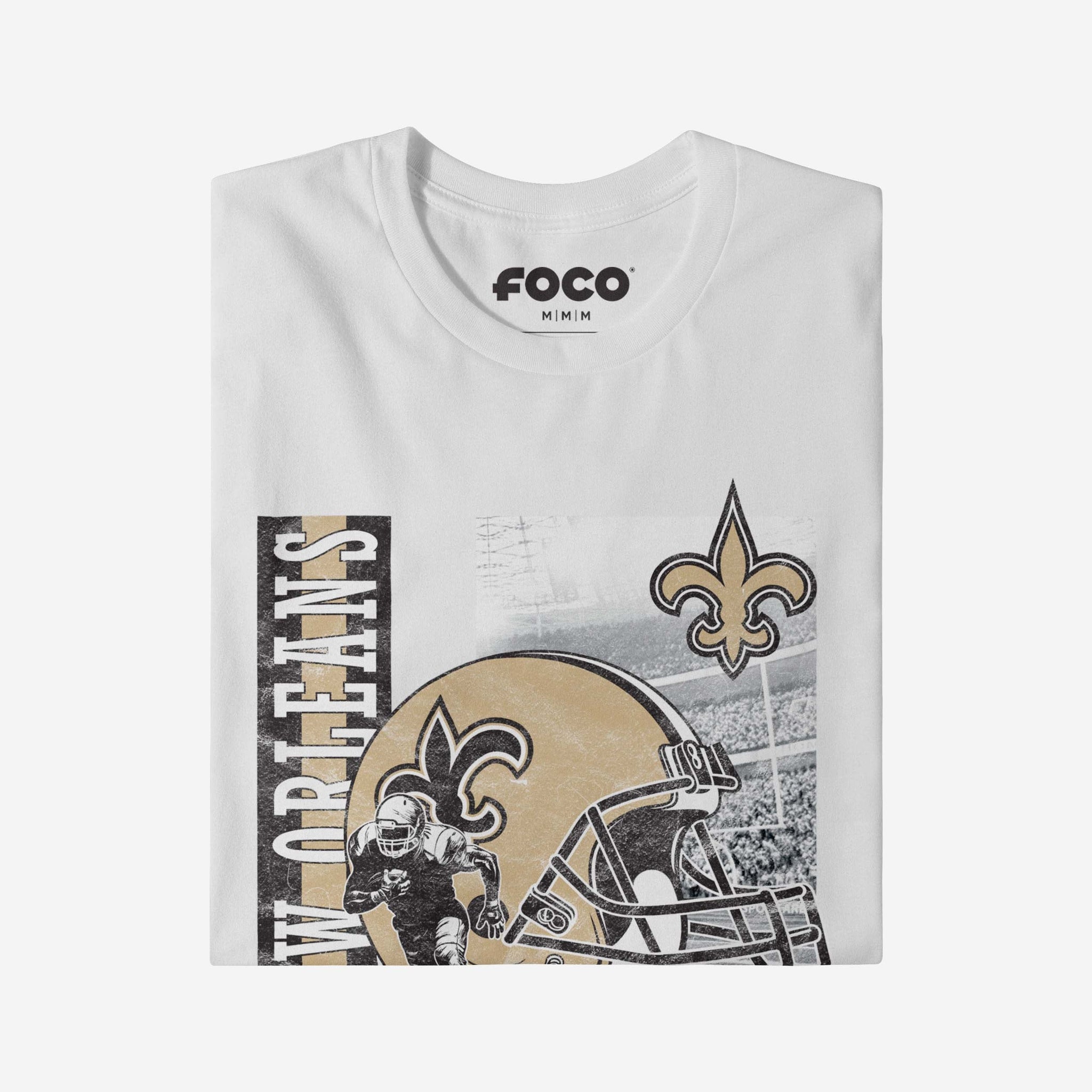 This top features a design that showcases your all-important team colors and a team logo display, meaning this t-shirt will prove your unmatched dedication to the New Orleans Saints when you’re at the game or watching at home. In other words, this graphic tee is about to be your new favorite teammate.
