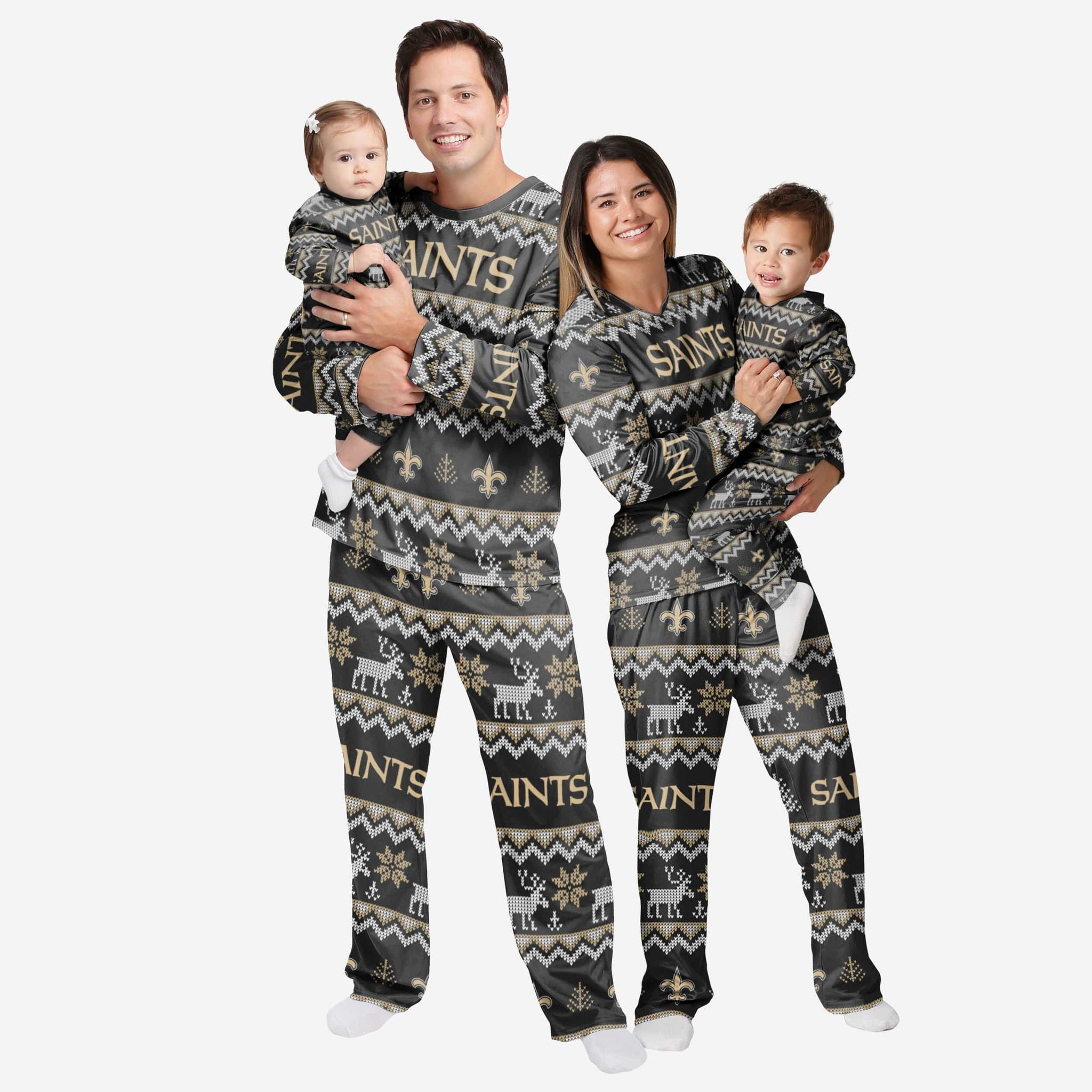 Get your young fan started early this holiday season in these New Orleans Saints Infant Ugly Pattern Family Holiday Pajamas! Your baby will absolutely love these matching Christmas pajamas! Make sure your infant enjoys sweet dreams filled with holiday joy by having them sleep in infant pajamas. Don’t forget to take your holiday photo with the whole family wearing matching Christmas pajamas!