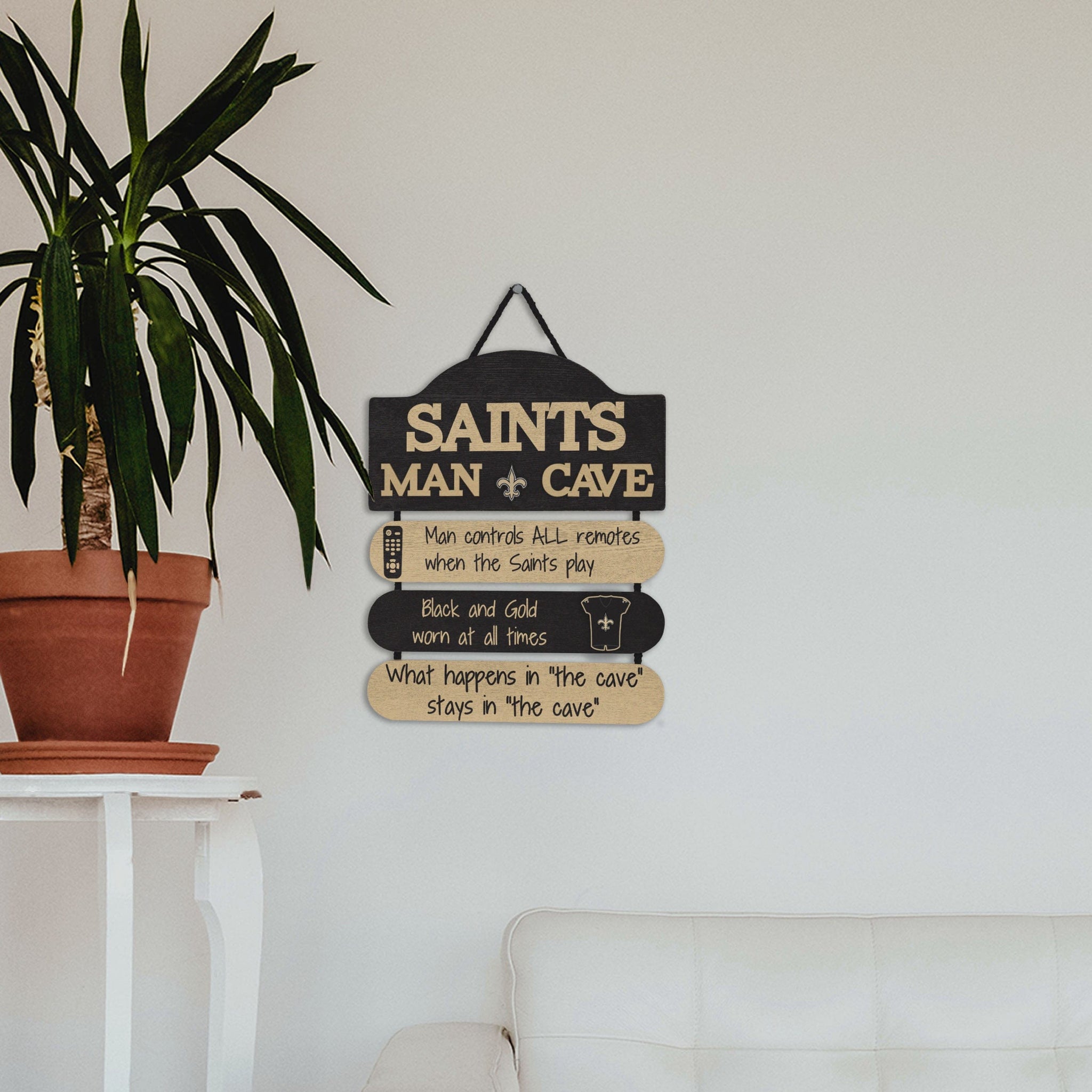 So, you're hosting the big watch party, and want to make sure you've decorated enough to impress your fellow fans. We've got you covered. This New Orleans Saints Mancave Sign lets everyone know who the fan in charge is, and gives your home field plenty of advantage.