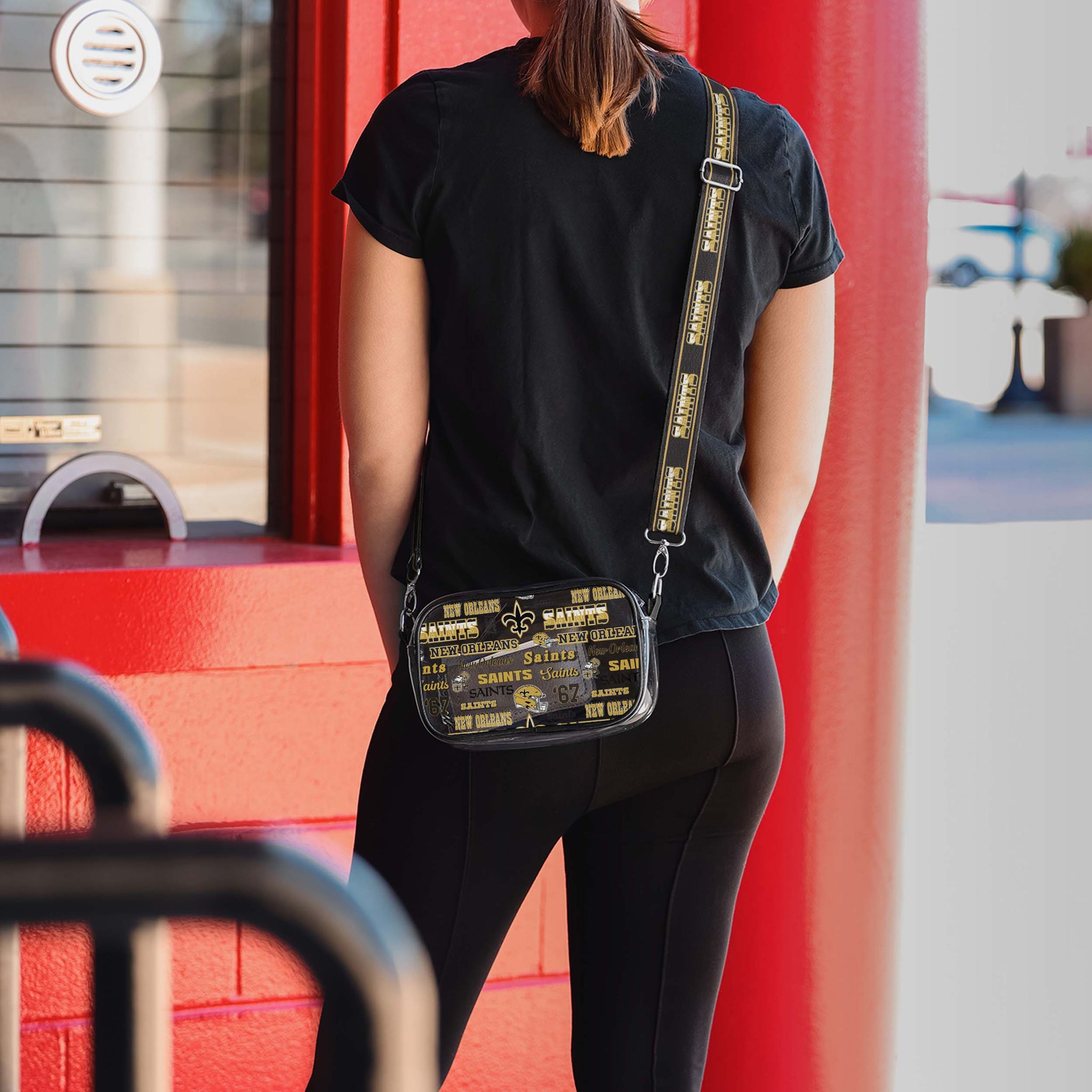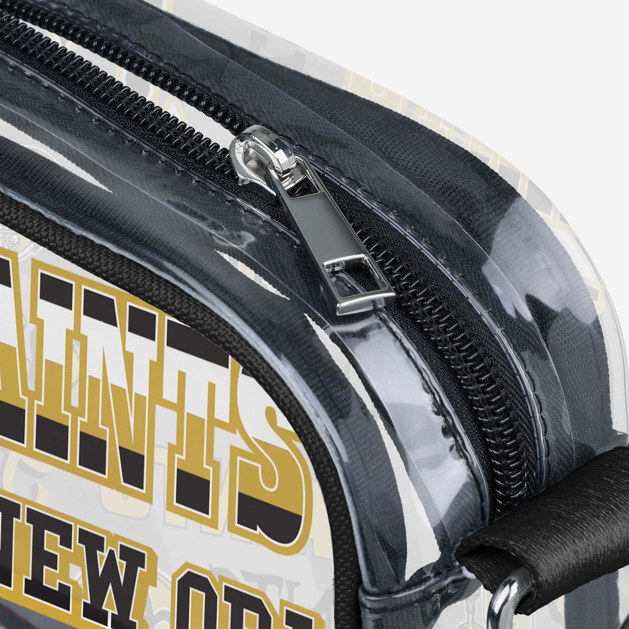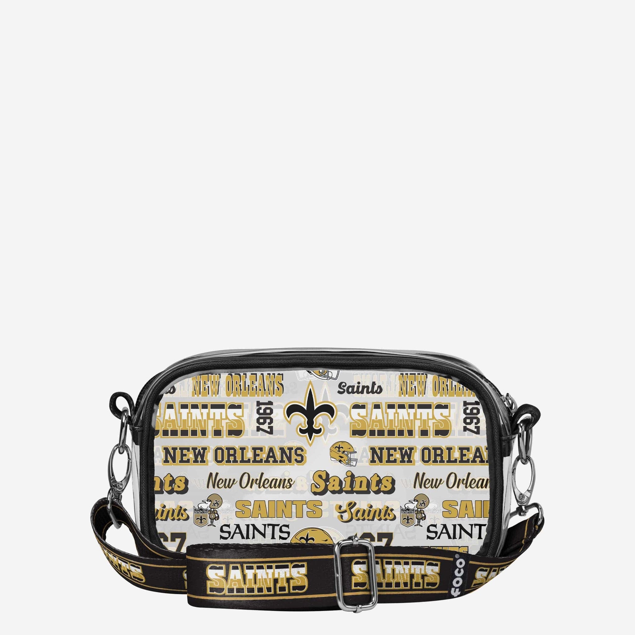 Over your shoulder and off to the game. Whether you're running errands on the town or running the tailgate in the parking lot, this New Orleans Saints Repeat Retro Print Clear Crossbody Bag is the perfect way to carry the team like never before.