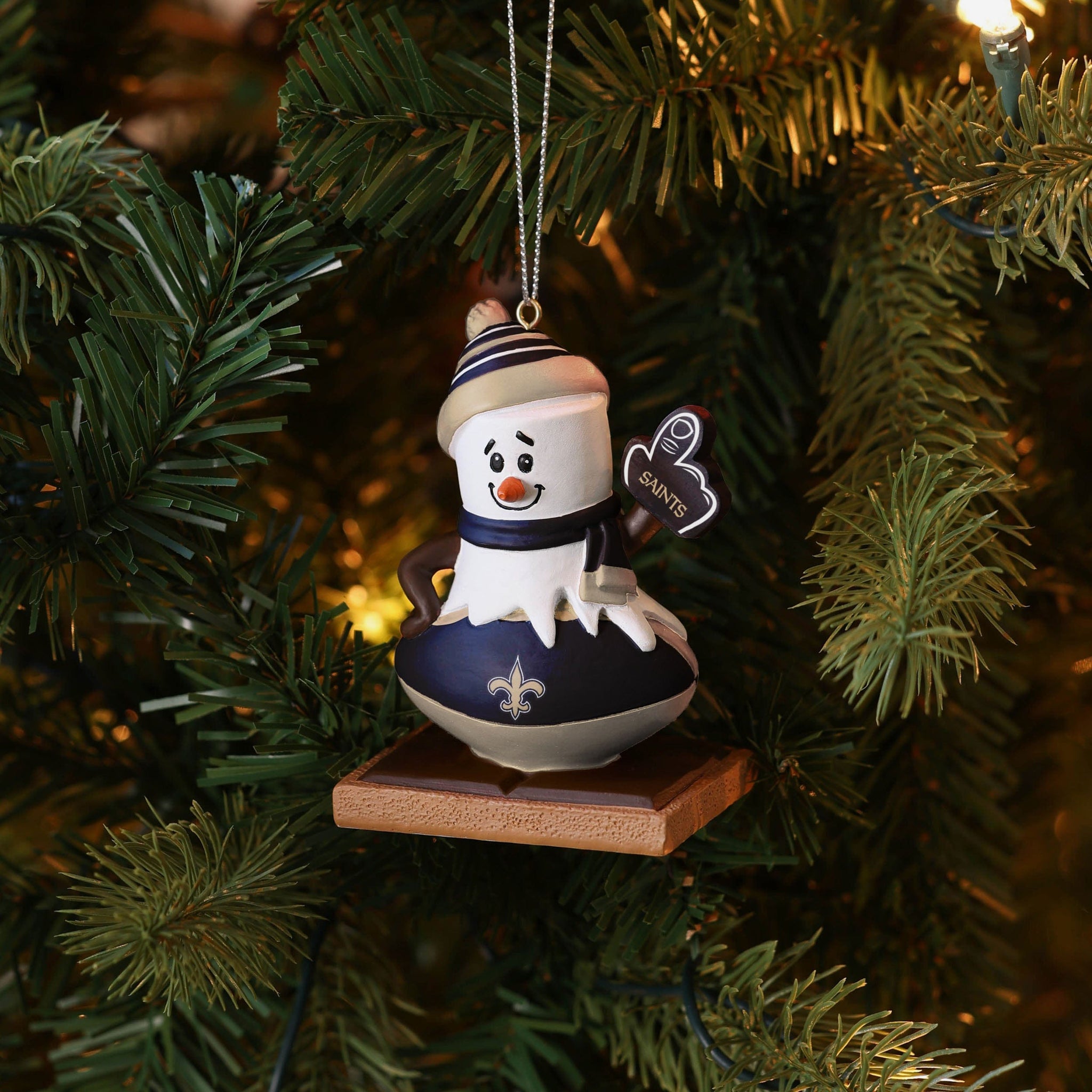 Ingredients for the perfect s'more: Graham crackers, chocolate, marshmallows… and team spirit. Enjoy s'more wins around the holidays by showing off this New Orleans Saints Smore on Ball Ornament.