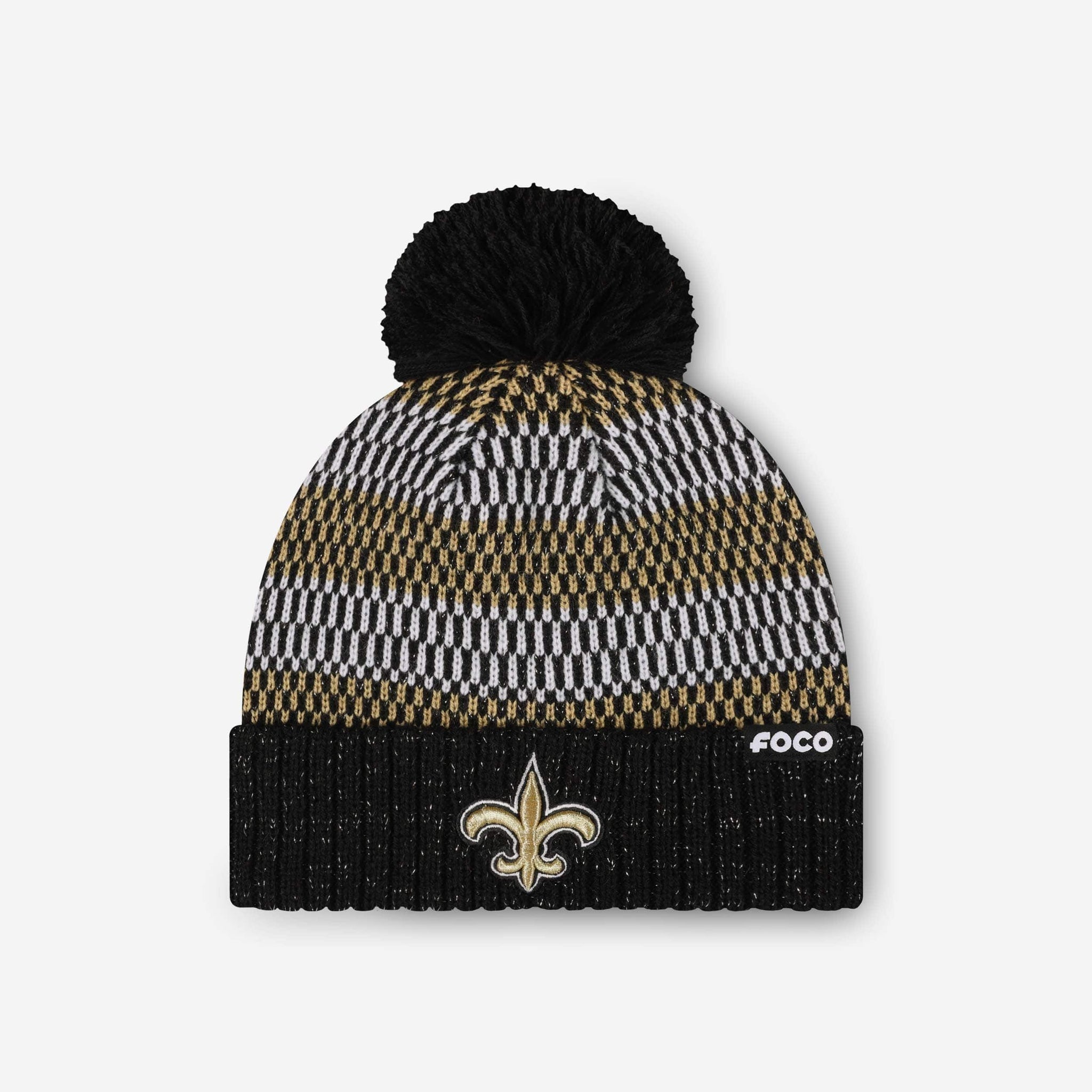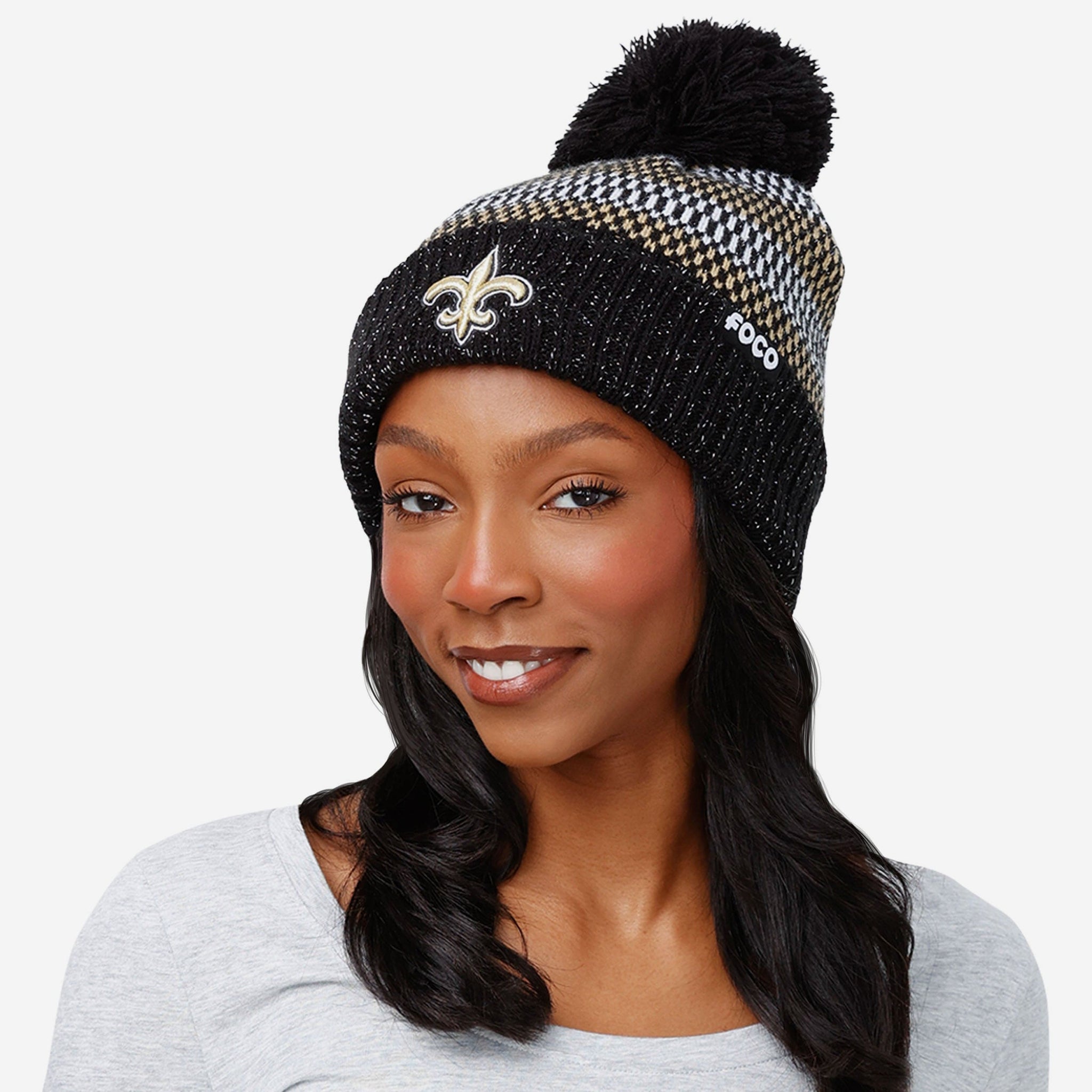 Putting together the ultimate fit for the tailgate and beyond? Make sure to get your head in the game with the New Orleans Saints Women's Cozy Knit Metallic Thread Pom Beanie!