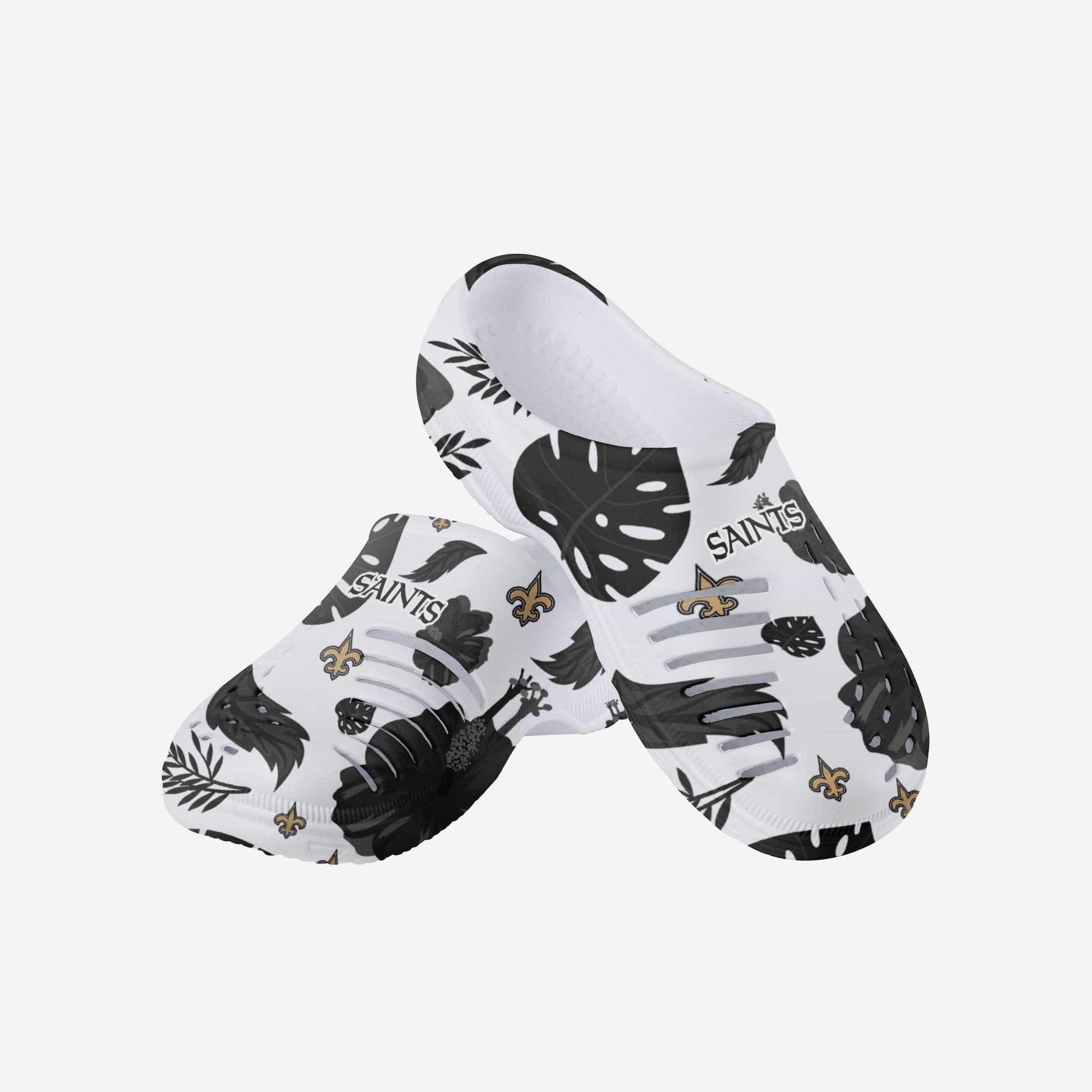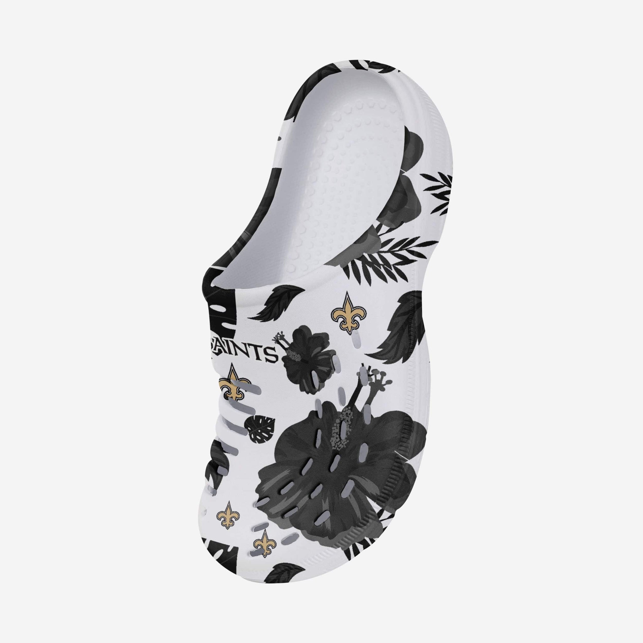 When you're packing for your next beach trip, make sure your team spirit isn't left at home. These New Orleans Saints Women's Floral White Clogs have you covered!