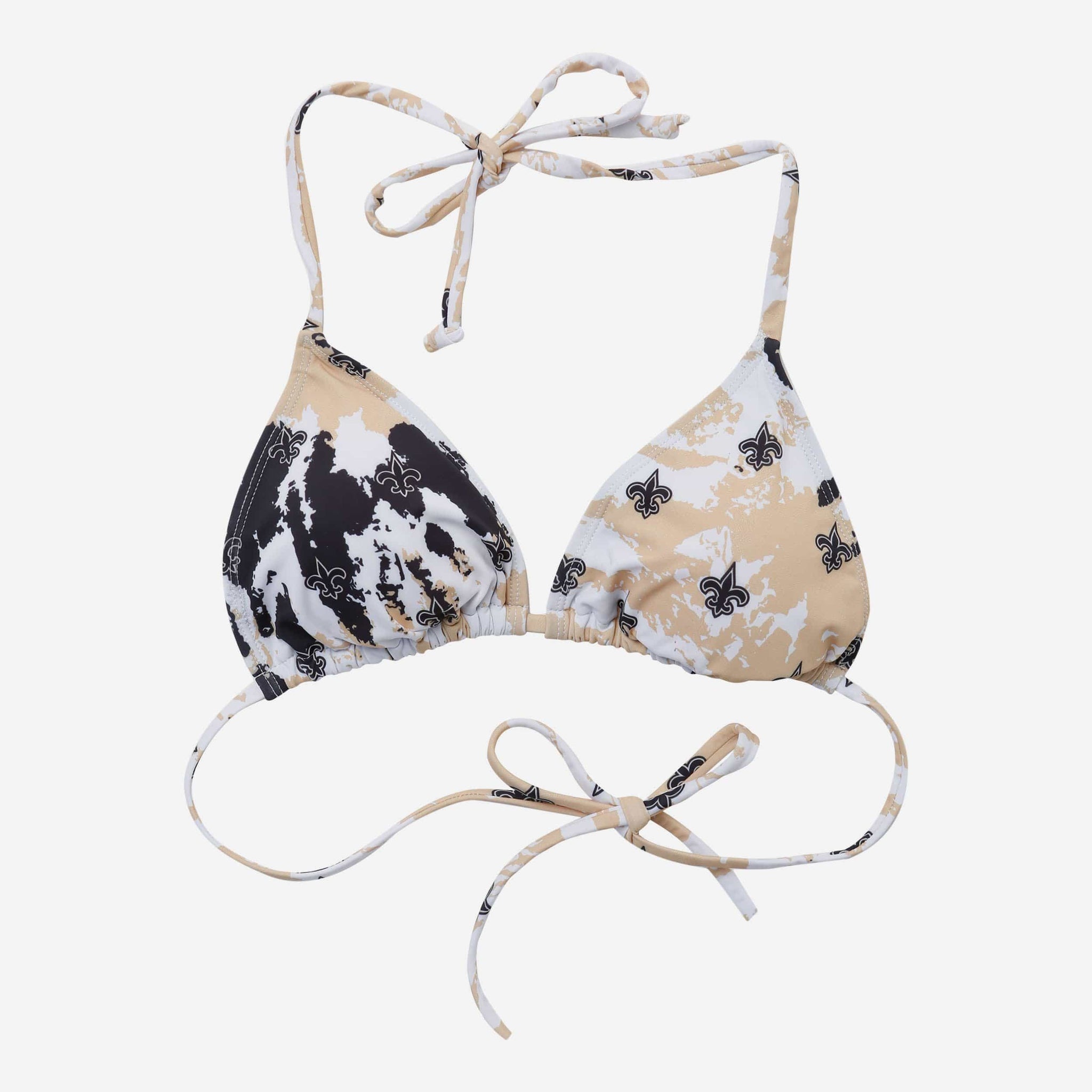Lounging around on a summer day? Make sure everyone knows your fandom doesn't take a vacation by wearing this New Orleans Saints Women's Paint Splash Bikini Top!