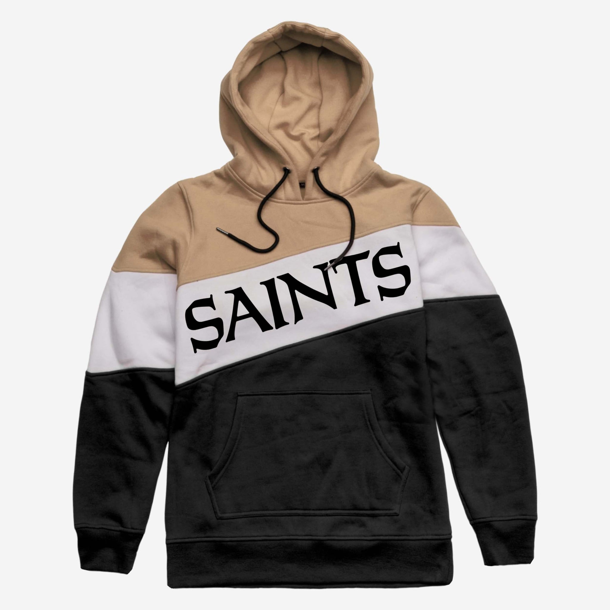 People like to say, "It's all good in the hood." But we prefer to say, "it's all goodie in the hoodie." Because everything will be great when you're wearing this New Orleans Saints Wordmark Colorblock Hoodie.